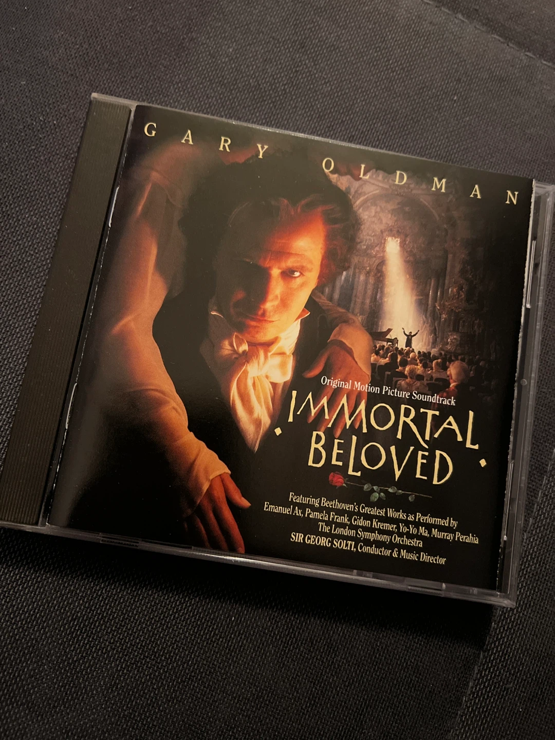 Selling the Immortal Beloved original motion picture soundtrack CD. It features Gary Oldman on the cover and includes Beethoven's greatest works performed by various artists, including Emanuel Ax and Yo-Yo Ma. A great addition for any classical music or movie soundtrack collector!