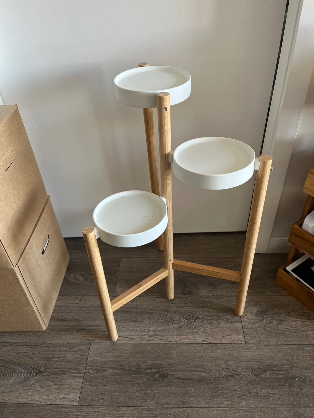 IKEA 3-Tier White and Wood Plant Stand
