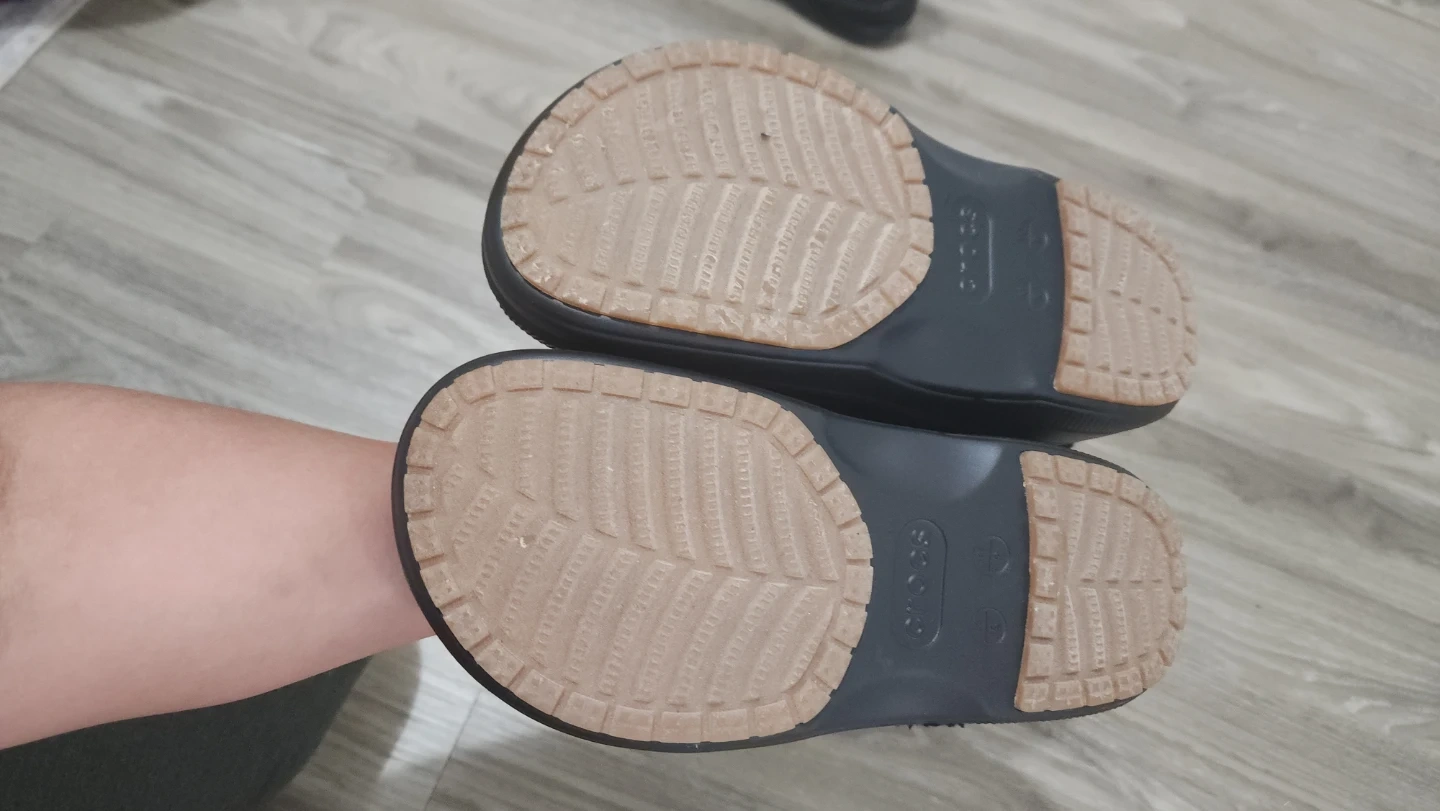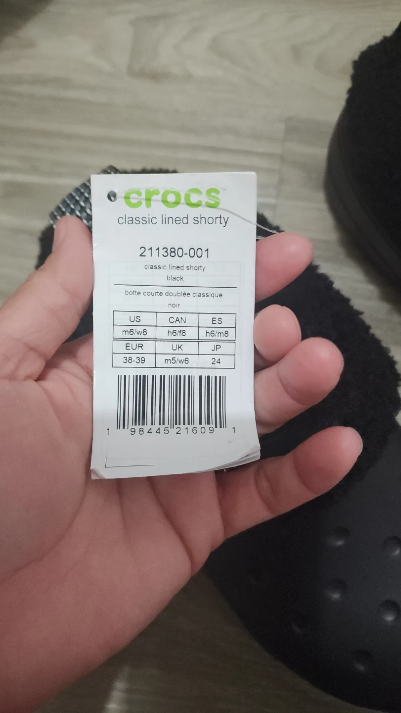 Crocs classic lined shorty slippers in black. These comfy clogs are lined with plush faux fur for extra warmth. Perfect for chilly days indoors or quick errands outside. Size is US 6/8.