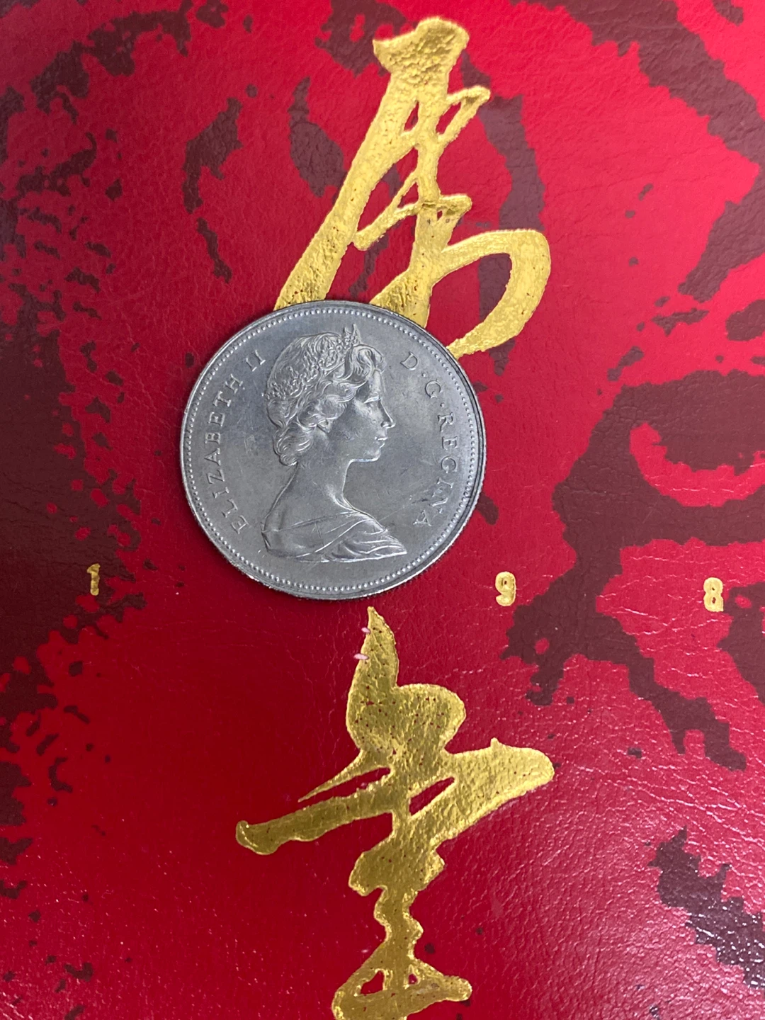This is a 1975 Canadian 50 cent coin featuring Queen Elizabeth II on one side and the Royal Coat of Arms on the other. It's made of cupronickel alloy. A nice coin for collectors!