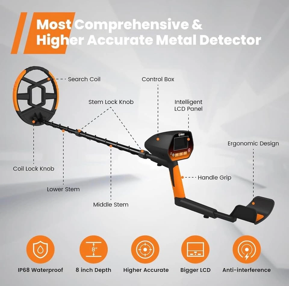 Brand new GoGonova metal detector. Features All Metal Mode and Disc Mode to discriminate for a specific metal. Adjustable stem from 39.3 to 51.3 inches, suitable for kids ages 8-12 and adults. Intuitive Large LCD Display and IP68 Waterproof Search Coil. Comes in its original box.
