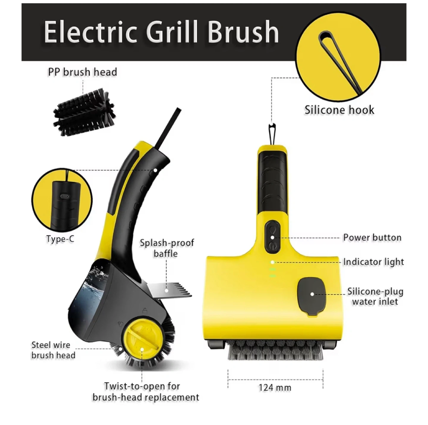 Electric Grill Brush - Yellow/Black - PURAMII DB1601