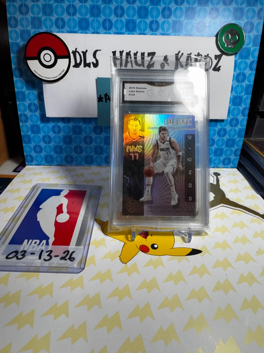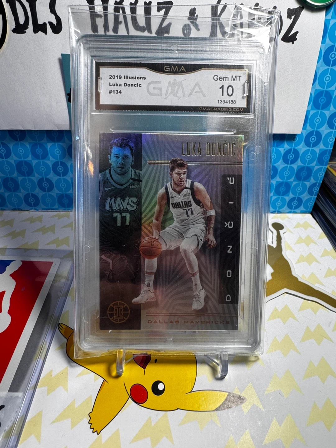 2019 Panini Illusions basketball card featuring Luka Doncic, card #134. Graded GMA 10 GEM MT. This is a holographic SP insert. A great card for any Mavericks fan!