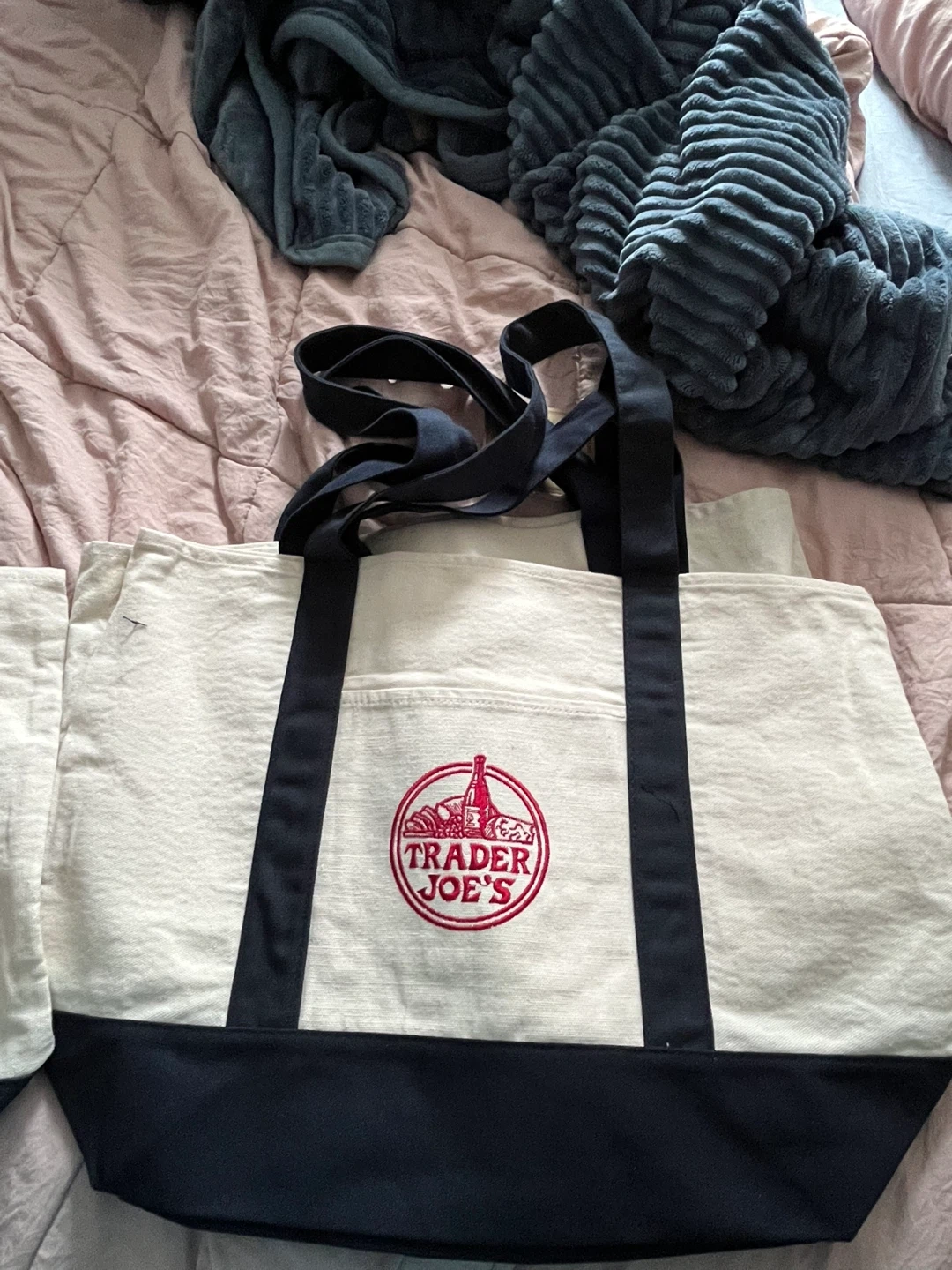 Buy & SellTrader Joe's Canvas Tote BagTrader Joe's Canvas Tote Bag$10This is a Trader Joe's canvas tote bag. It's a sturdy bag with navy blue handles and base. Two front pockets.ConditionNewWHERE TO MEET19 Eva RoadView MapSELLERMitchEtobicoke W Mall261 review1 chats·3 favorites·47 viewsSEND CHAT TO SELLERHi Mitch! I’m interested in your listing.Hi Mitch! I’m interested in your listing.Get the Karrot app to chatSign In to chat