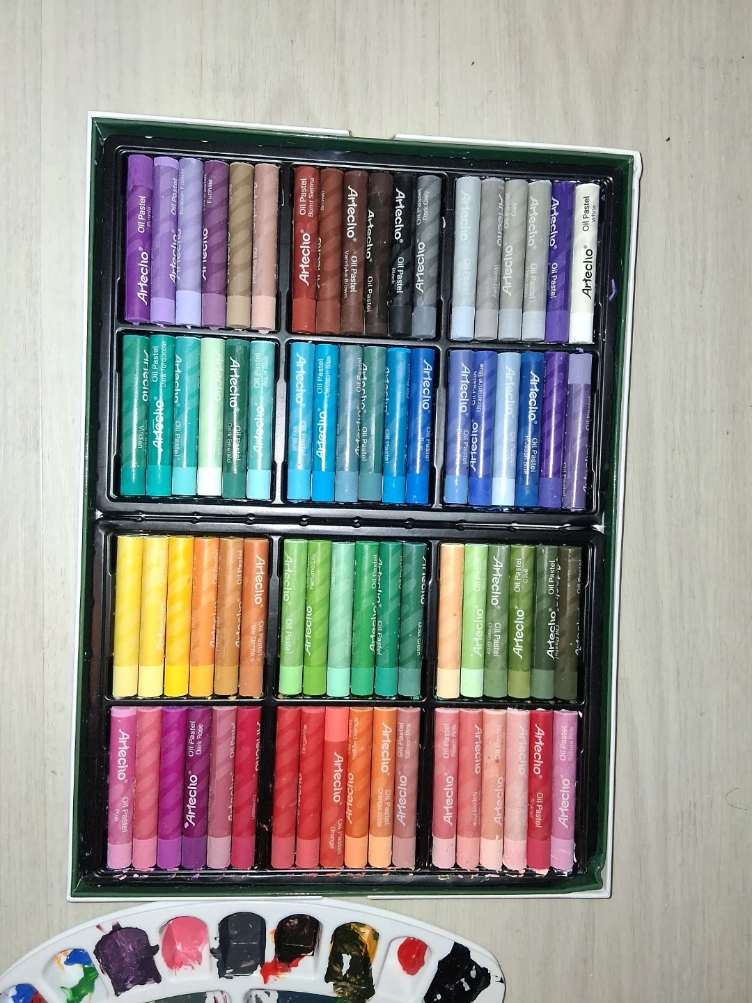 This is a set of Artecho oil pastels. It includes a wide variety of colours for your artwork. The pastels are oil-based, offering smooth application and vibrant results.