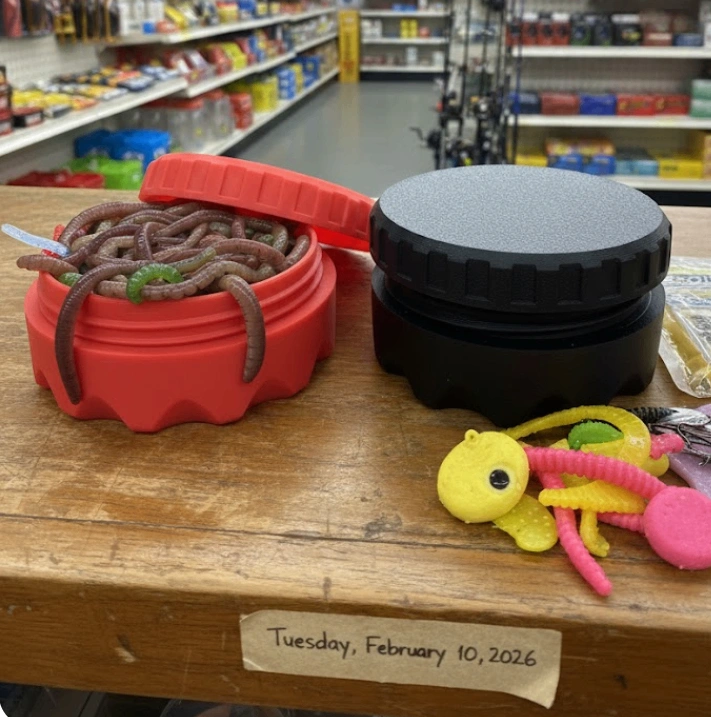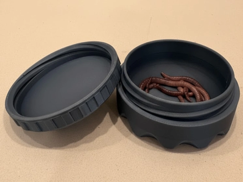 Curved inside corner so that your worms or grubs don't get stuck in the corners and become hard to remove.
