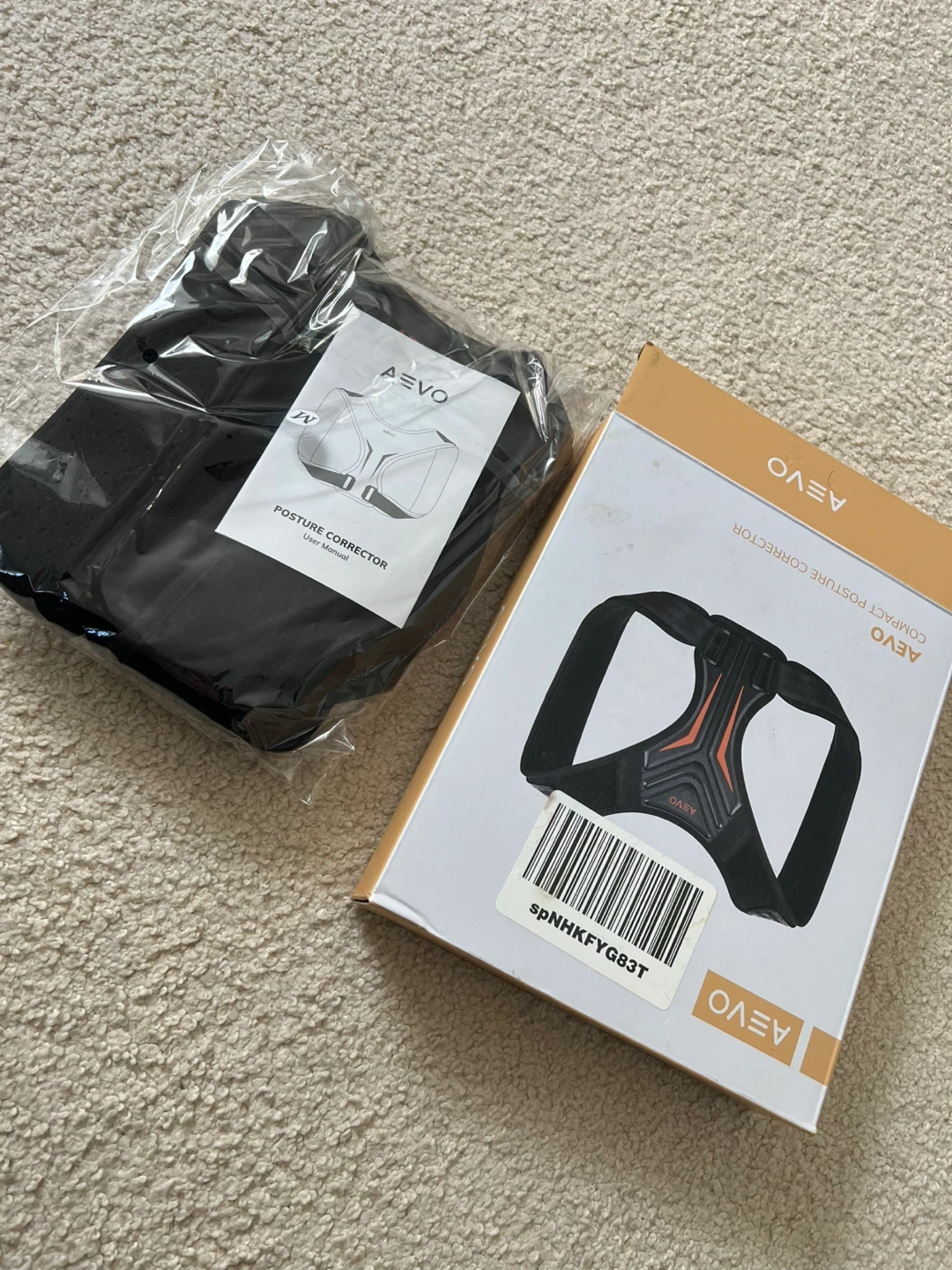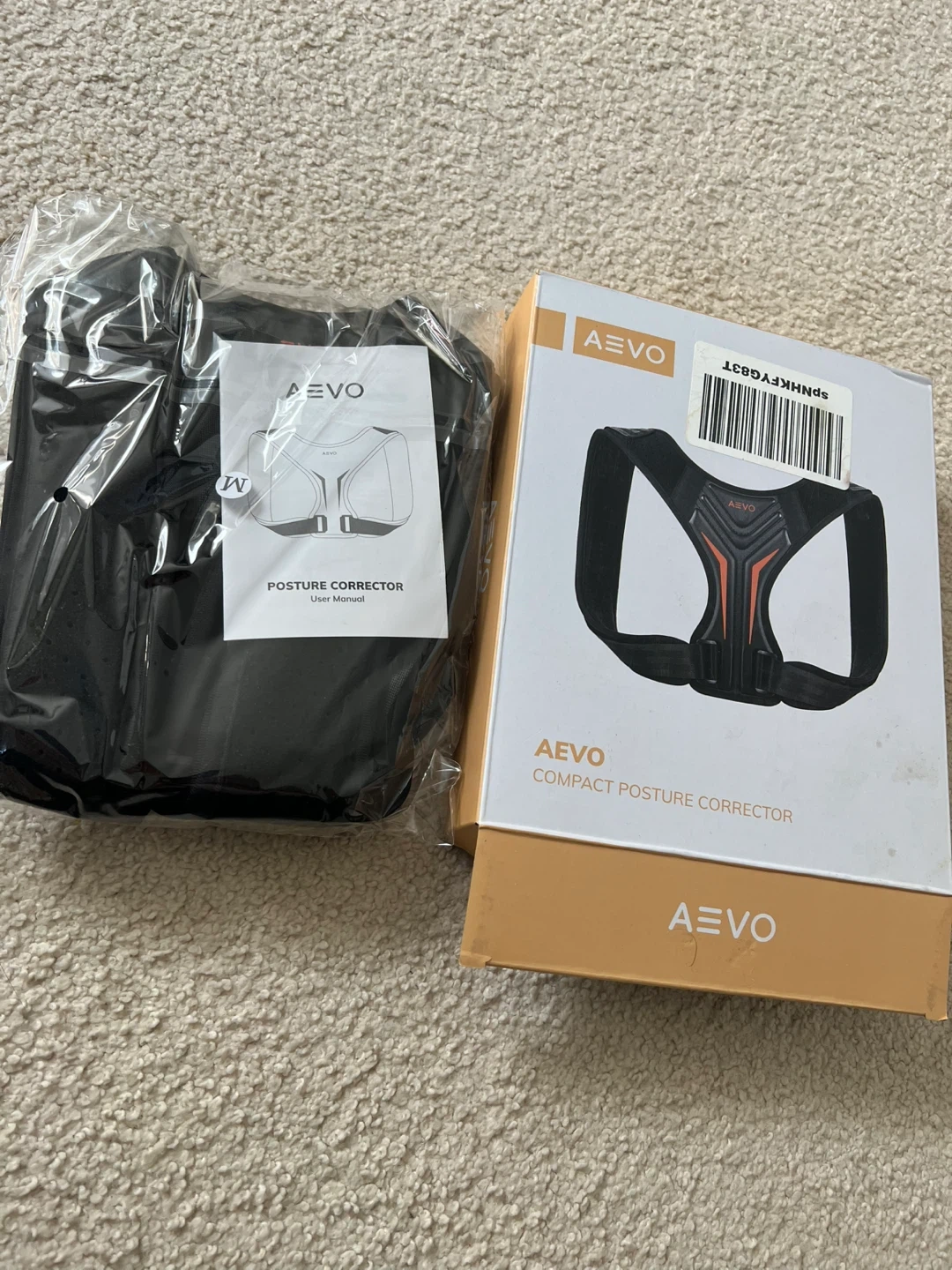 AEVO posture corrector, size medium. Includes user manual. Made with a durable material for comfortable support. Great for improving back alignment!