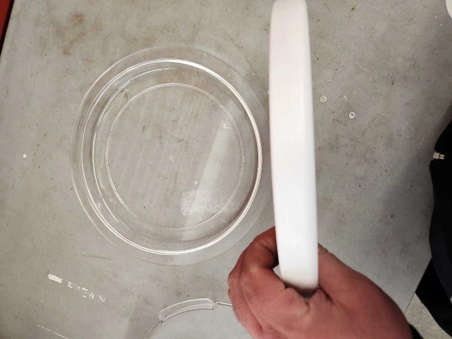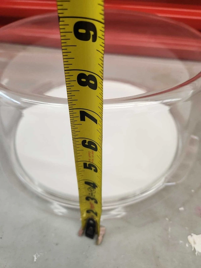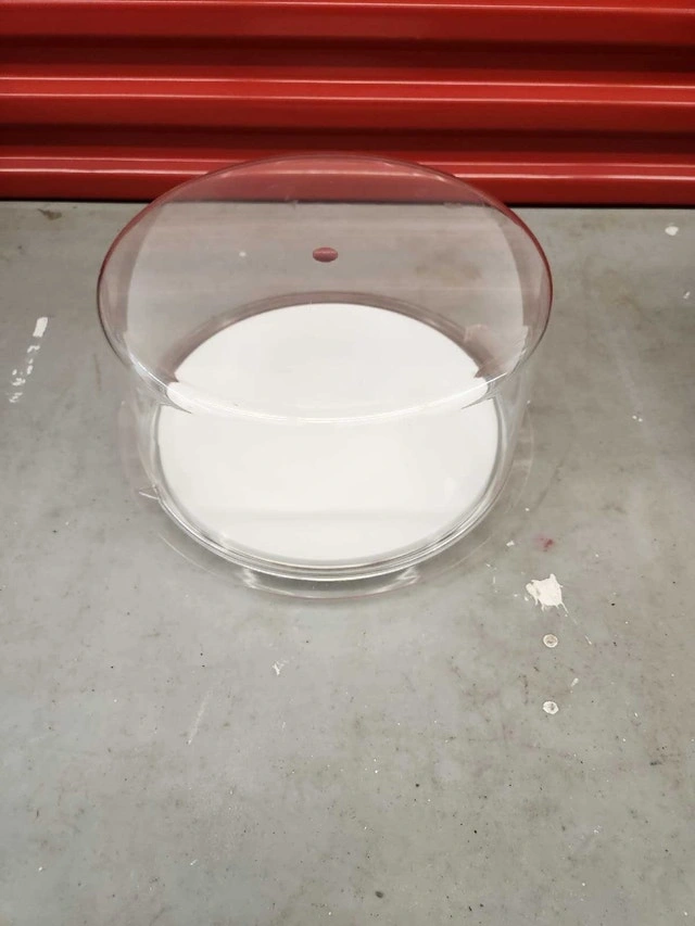 Elevate your desserts with this chic, circular, used cake display stand, showcasing a clear acrylic dome and a sturdy white base. This stand is perfect for showcasing cakes, cupcakes, or any other delectable treats! Specifications: Shape: Circular, Material: Acrylic (Dome), White Base, Features: Clear dome for display. Based on similar listings, this item sells for between $20-$40. I'm pricing it accordingly. Cash accepted.