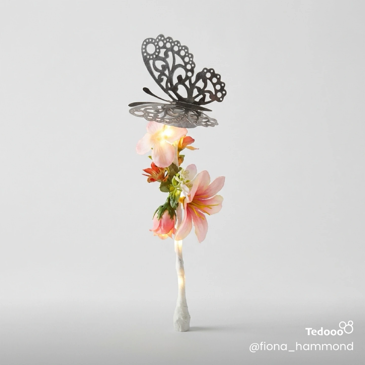 These one of a kind, whimsical fairy wands are adorned with delicate flowers, feathers, and metal butterfly accents. Each wand features built-in LED lights that create a magical glow. They're perfect for imaginative play or as enchanting decor!