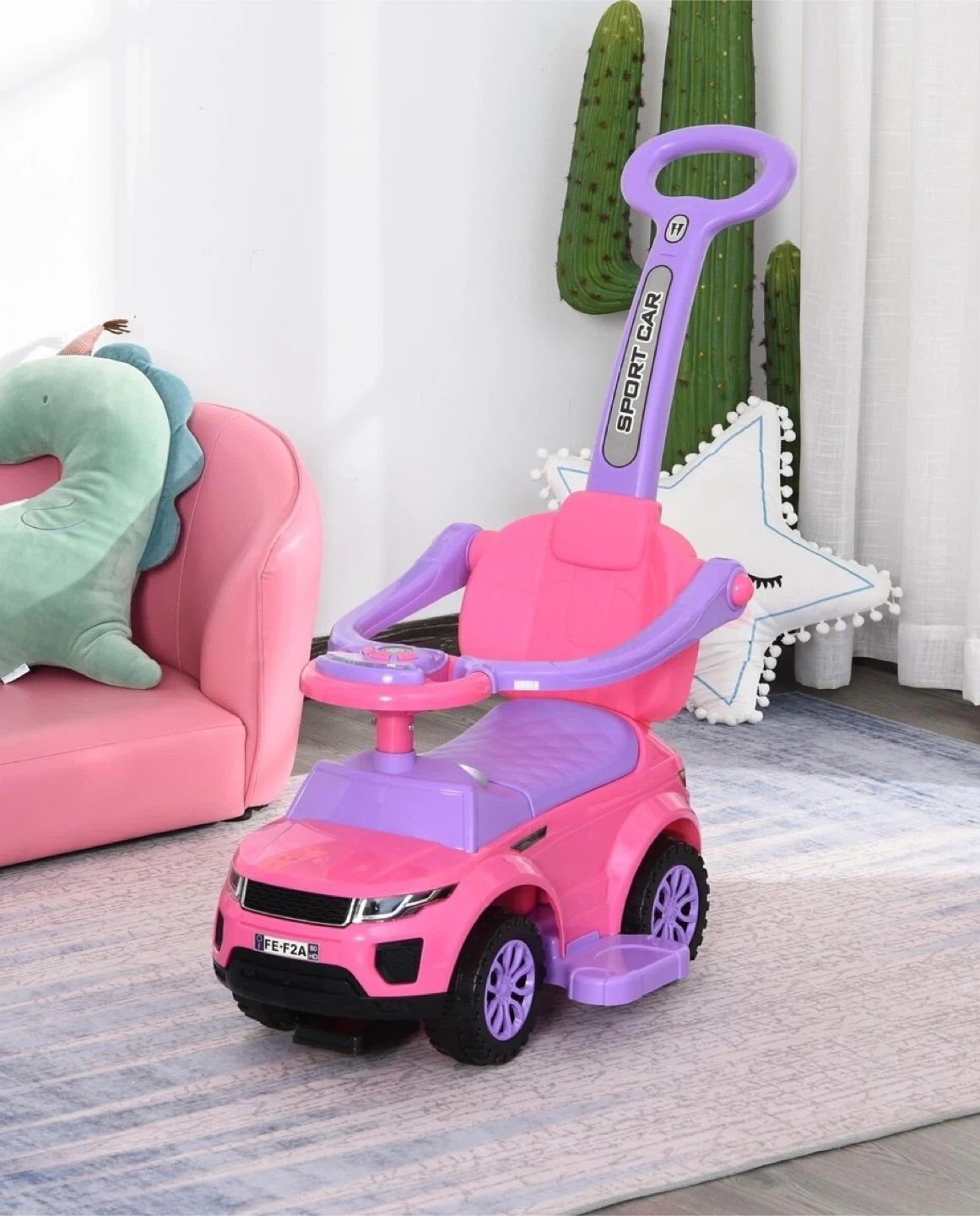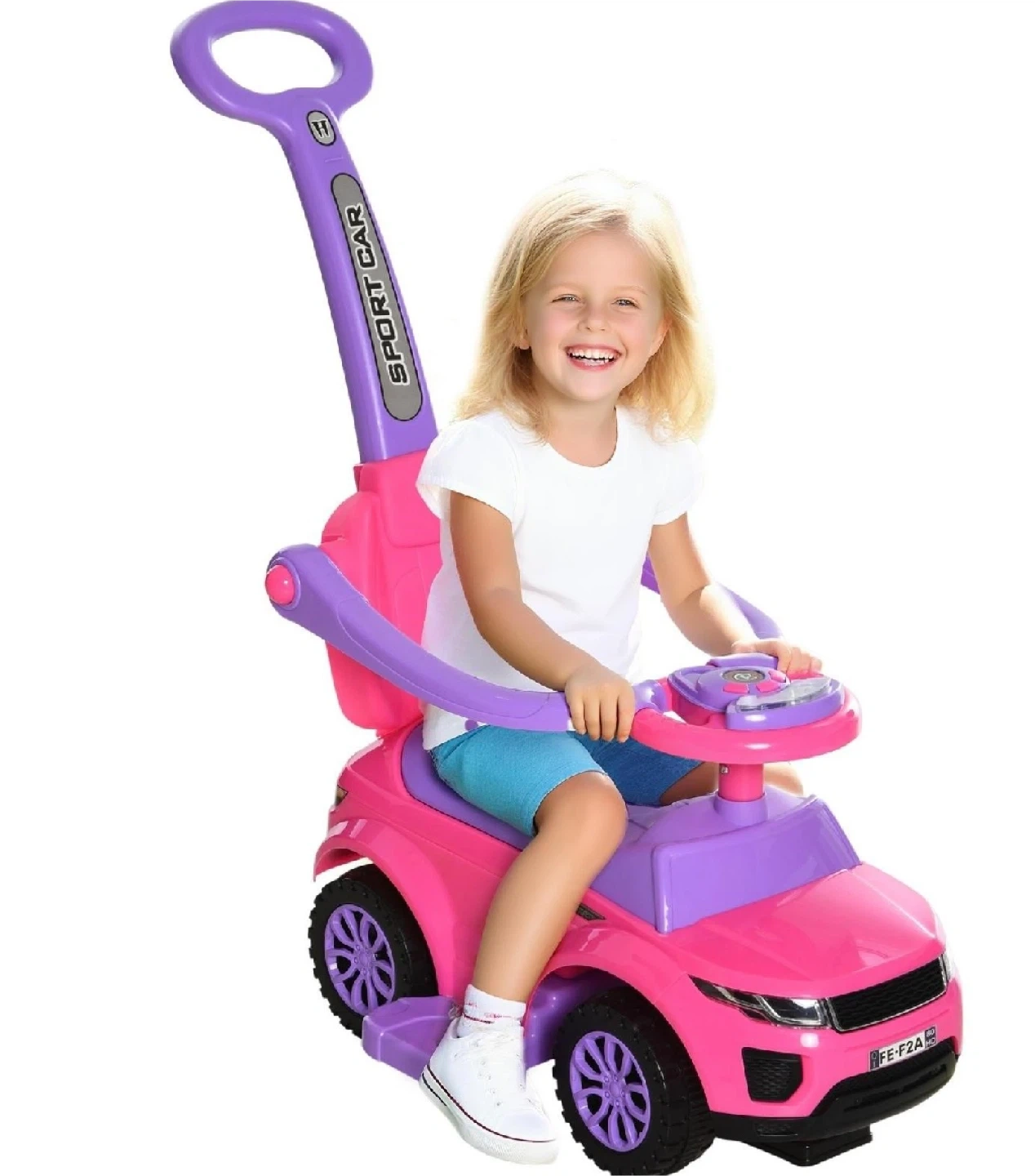 This brand new 2-in-1 kid's ride-on push car and stroller is the perfect way to keep your little one entertained and active! This versatile car features a sturdy construction, comfortable seat, and a convenient push handle for parents. It's designed to help children develop their motor skills and coordination, while providing hours of fun. It also comes with safety features. Never used and in the original packaging, it's ready for its first adventure!