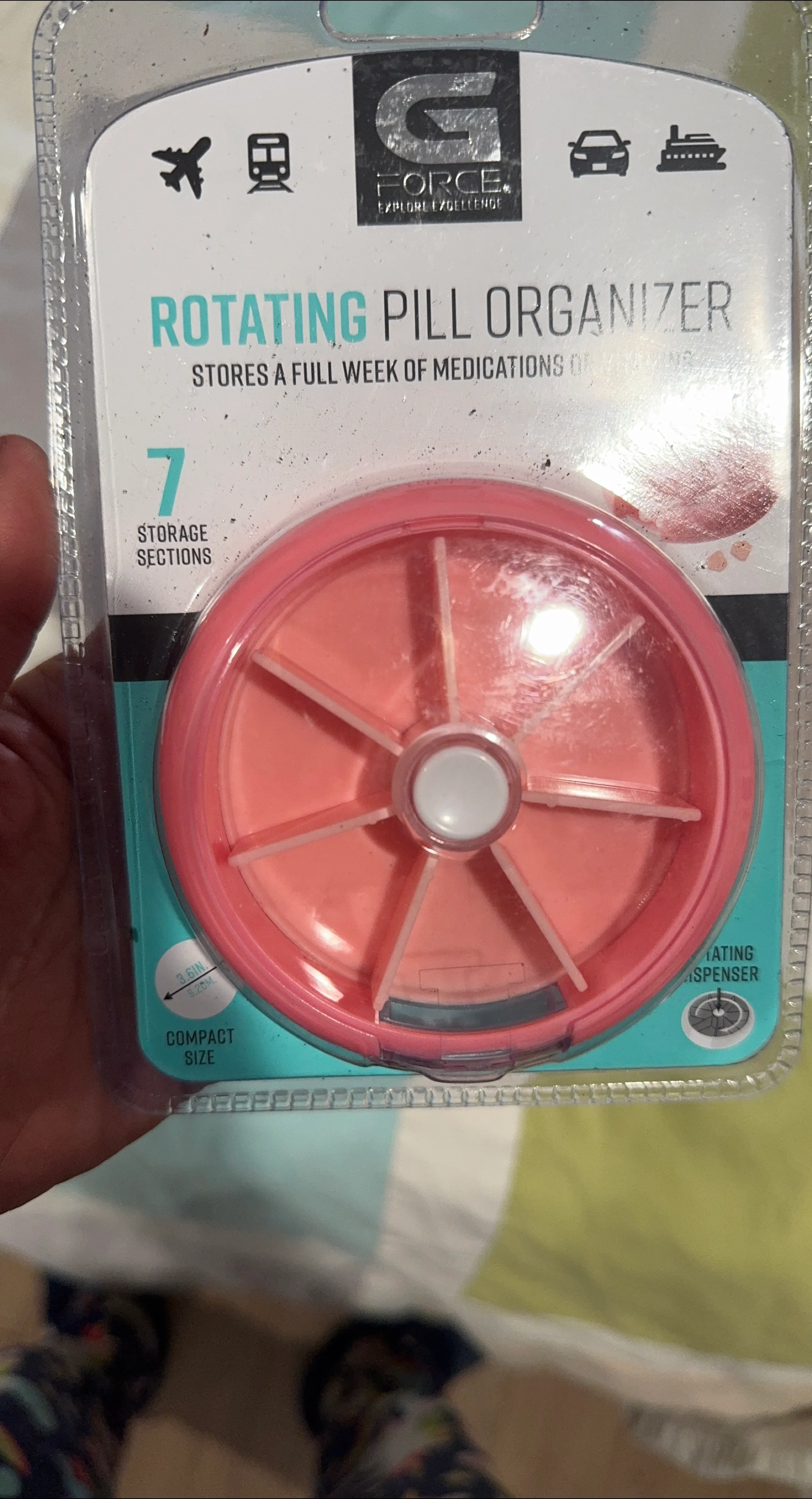 BRAND NEW, UNOPENED! This pink G Force rotating pill organizer stores a full week of medications. It has 7 storage sections and a compact size of 3.6 inches. It's great for travel!