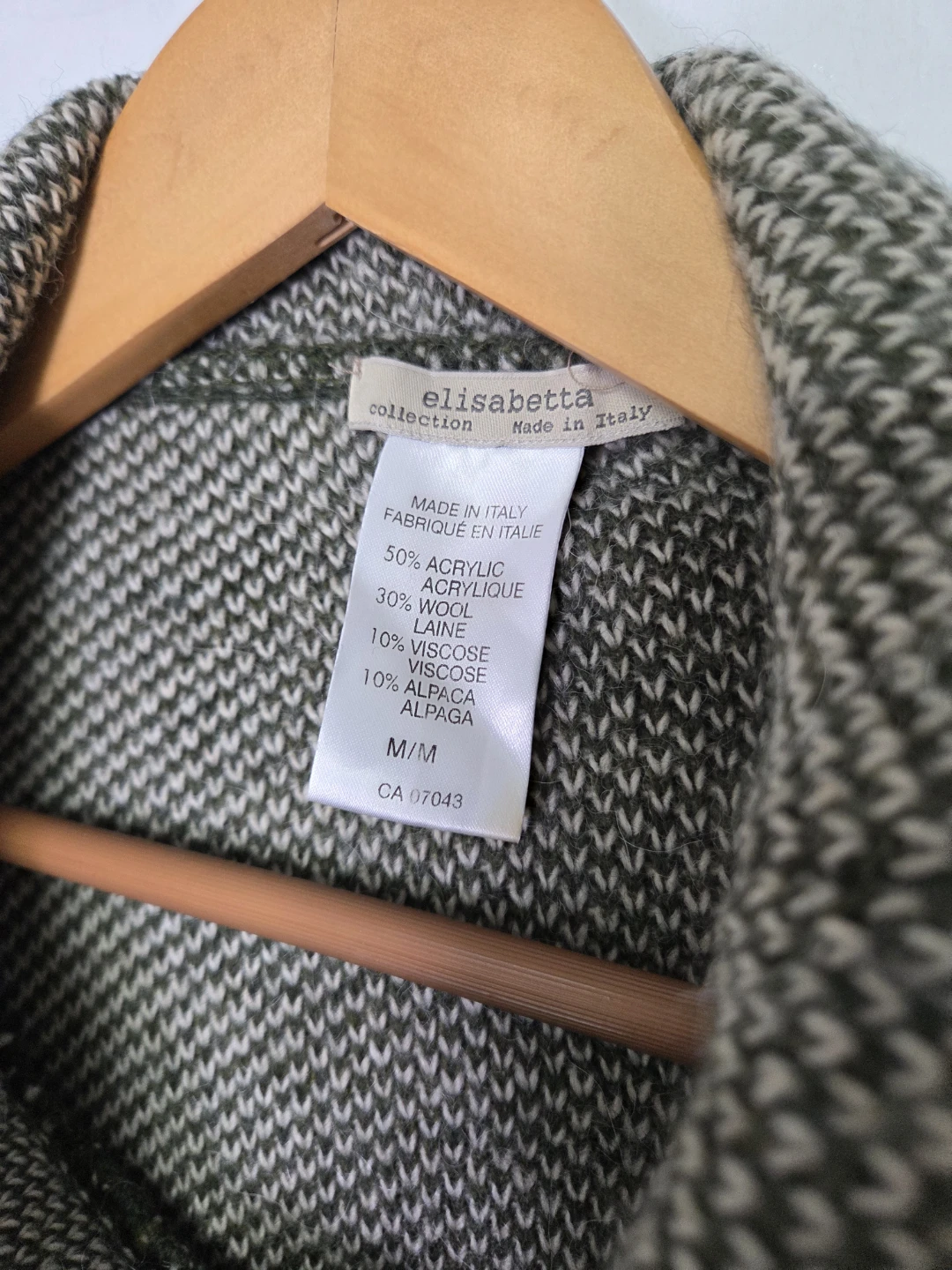 Elisabetta Collection green-cream poncho, made in Italy. It's a size M, has a cowl neck and the arms have slits. Its in great state.