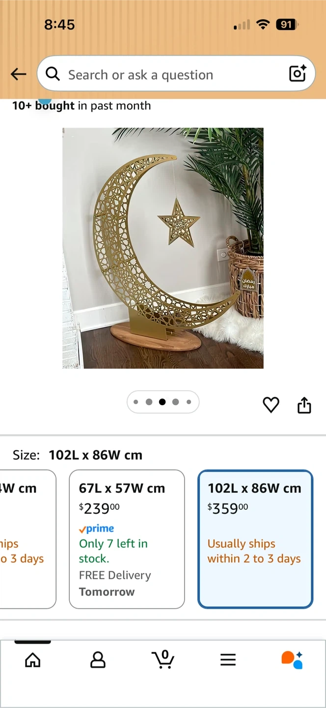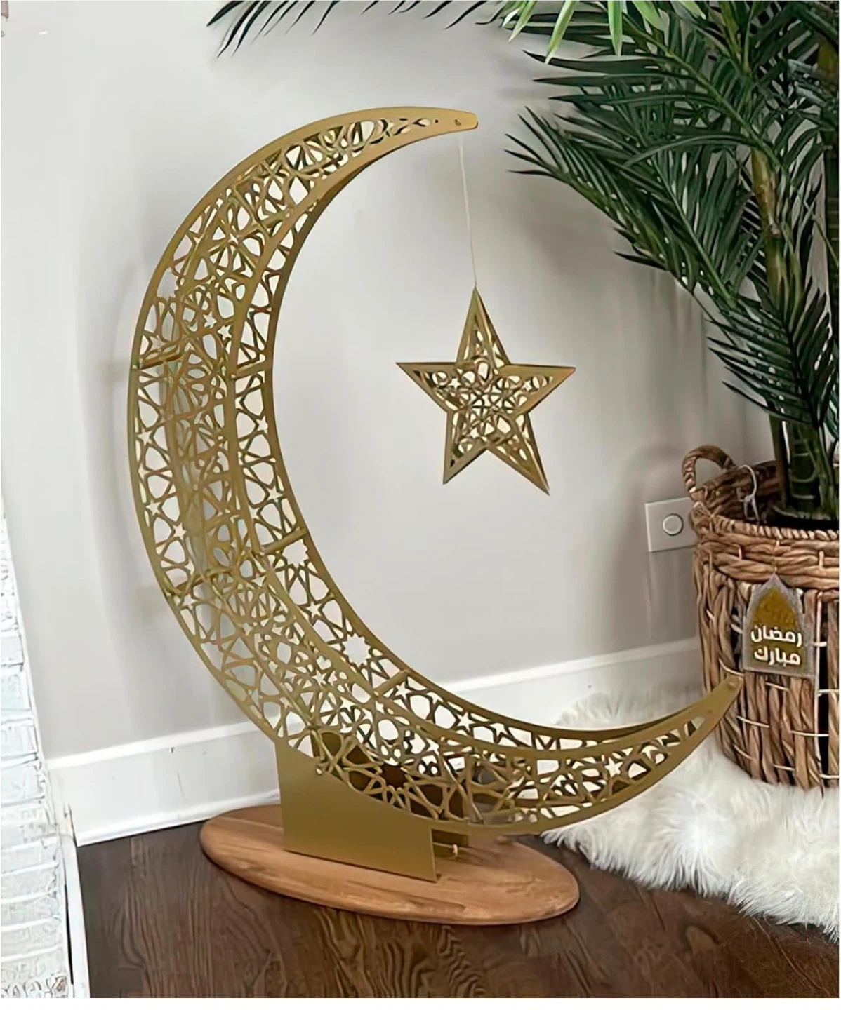 Metal Crescent Moon and Star - Decoration for Home | Ramadan Decor | Wall Art | (102 x 86 cm | 40.2 x 33.9 inches | Large)