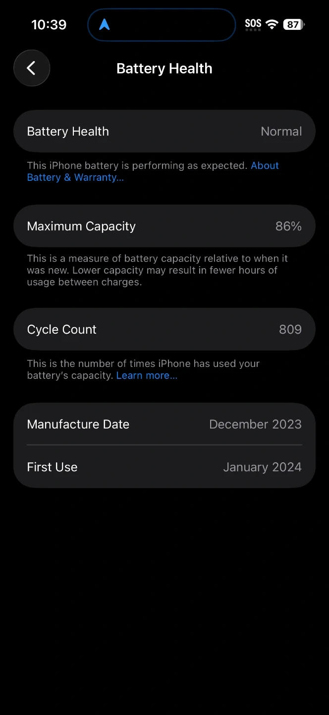 Battery health: 86%, minimal signs of use. Factory unlocked.