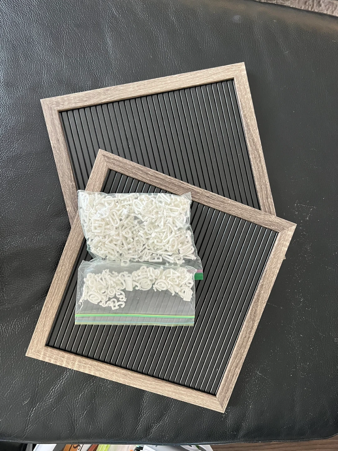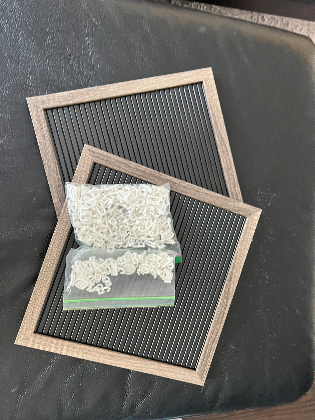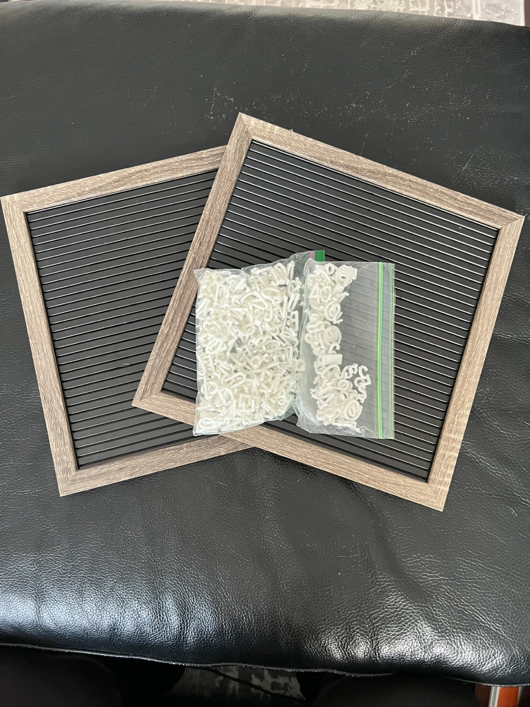 Two letter boards with a rustic wood-look frame. Comes with a bag full of white letters and numbers. Great for announcements or decor!
