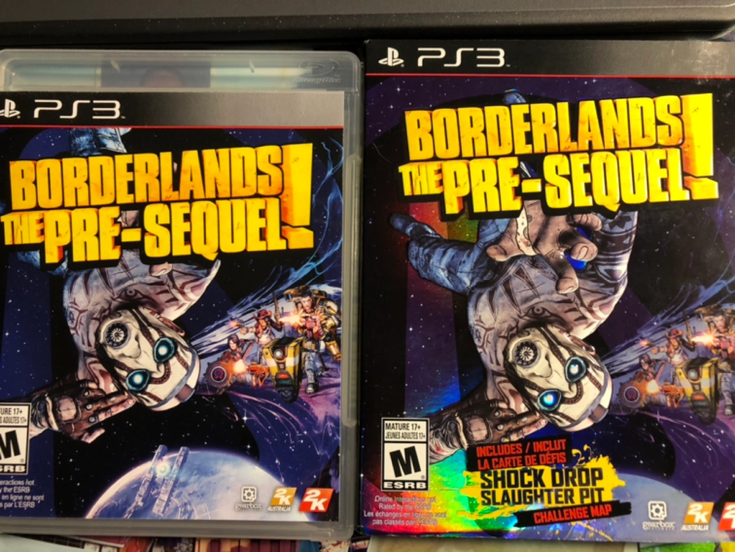 Borderlands: The Pre-Sequel for PlayStation 3. It includes the Shock Drop Slaughter Pit Challenge Map. This game is rated M for Mature 17+.