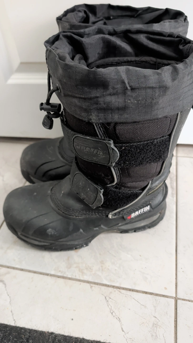 These Baffin Eiger winter boots are made for men. They're black and feature a durable rubber sole with adjustable straps. Includes original liner. Size 7 USA.