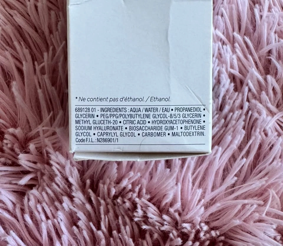 Brand new 75 ml hyaluronic acid serum by Vichy. Hyaluronic acid is a hydrating agent that helps support the skin barrier. With a strong skin barrier, you are less likely to break out. Retail price is $65.