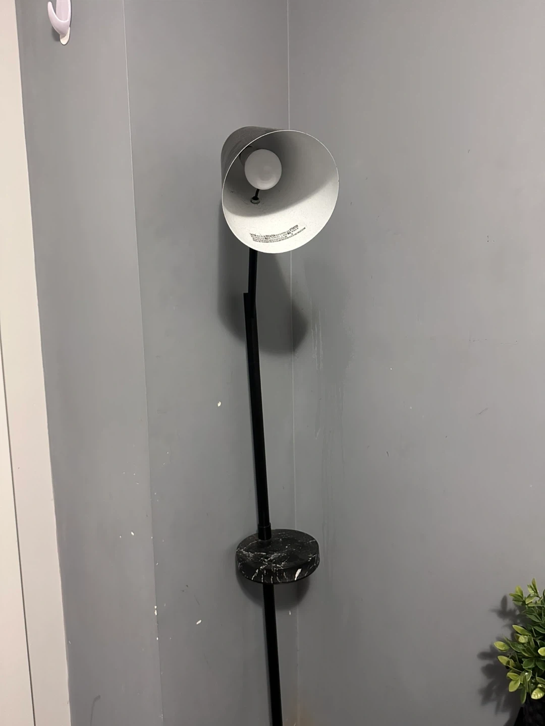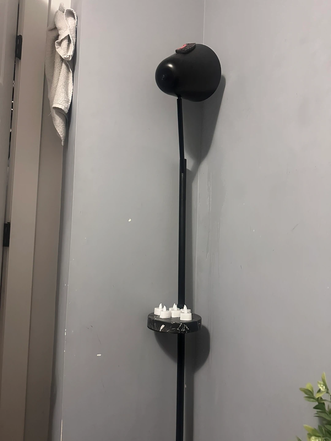 Black floor lamp with shelf