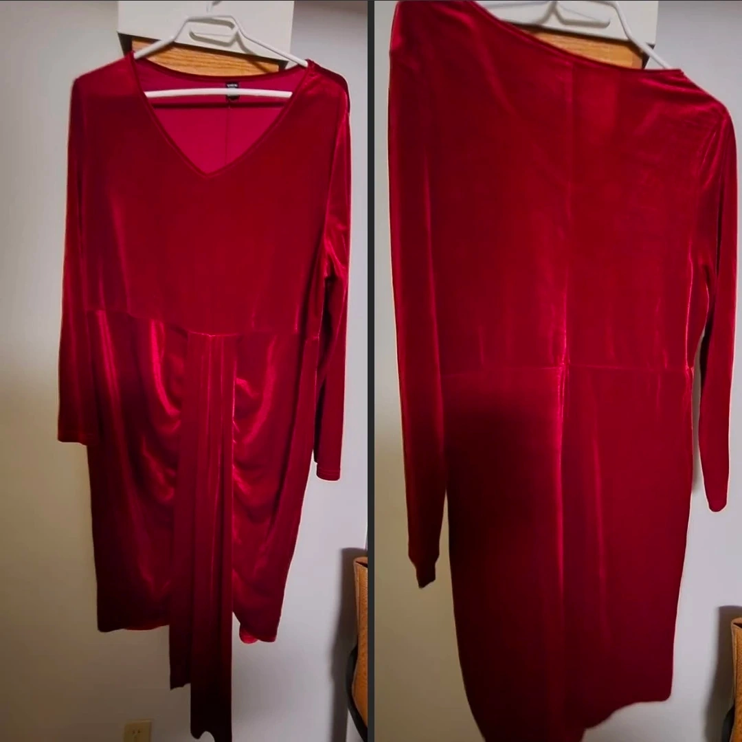 Selling a lovely red velour dress from SHEIN in size 2XL! It's in great condition and would be perfect for a special occasion or a night out. The velour material is so soft and luxurious! Pickup only and cash preferred.