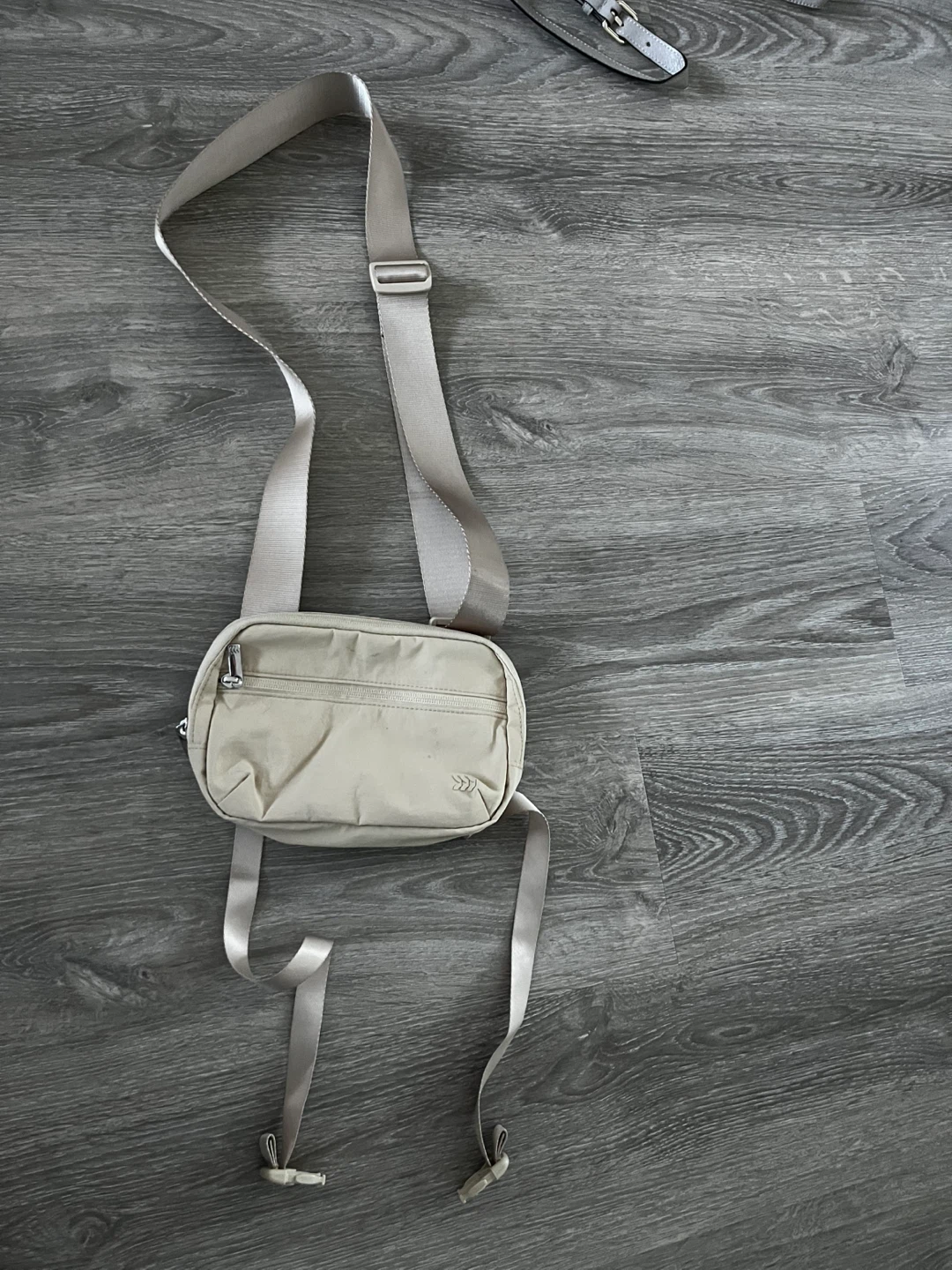 Selling a beige yoga strap. The strap has an attached pouch perfect for carrying wallets, keys and hair tie when going to the studio.