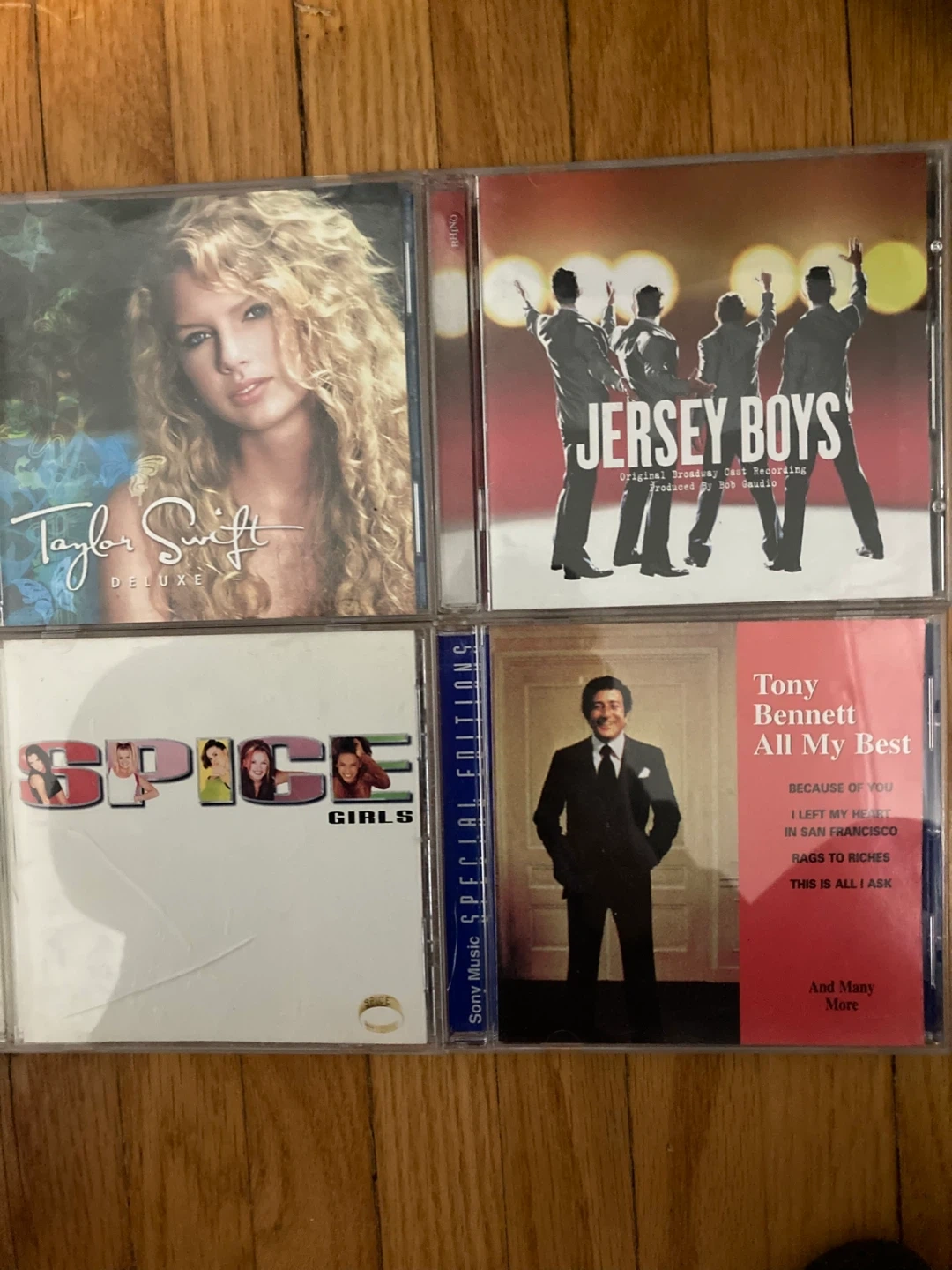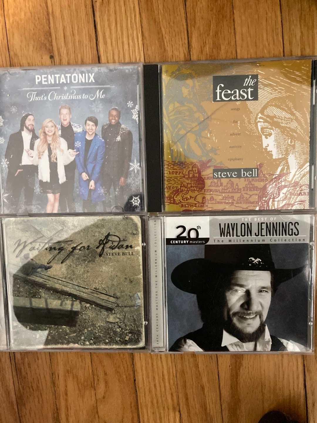 Collection of music CDs including Reba, Steve Bell, Rebecca St. James, Taylor Swift, The Wallflowers, Jersey Boys, Spice Girls, Tony Bennett, Pentatonix, and Waylon Jennings. Perfect for music collectors! $3 each or all for $30, willing to negotiate.