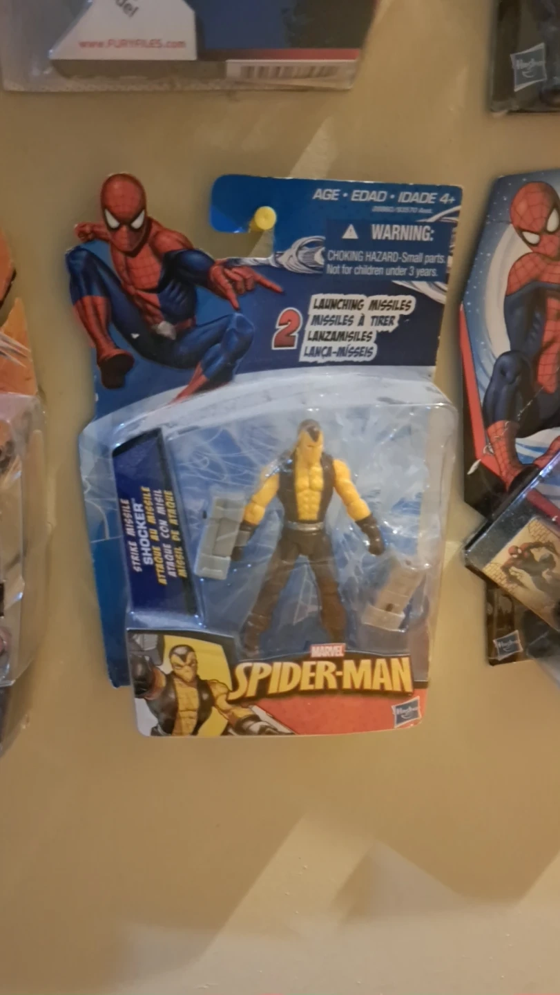 This is a Marvel Spider-Man action figure of the character Shocker. It comes with launching missiles. Recommended for ages 4 and up. Includes one action figure and accessories.