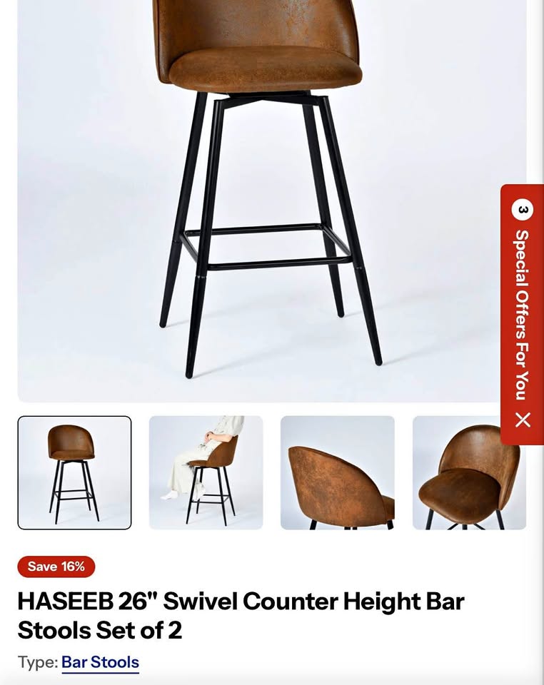 1 / 71 / 7Buy & SellBrown 26" Swivel Counter Height Bar Stools Set of 2Brown 26" Swivel Counter Height Bar Stools Set of 2$149Comes in Box UnassambledWHERE TO MEETCheck LocationView MapSELLERBestStuffWoburn29020 reviews1 chats·1 favorites·13 viewsSEND CHAT TO SELLERHi BestStuff! I’m interested in your listing.Hi BestStuff! I’m interested in your listing.Get the Karrot app to chatSign In to chat