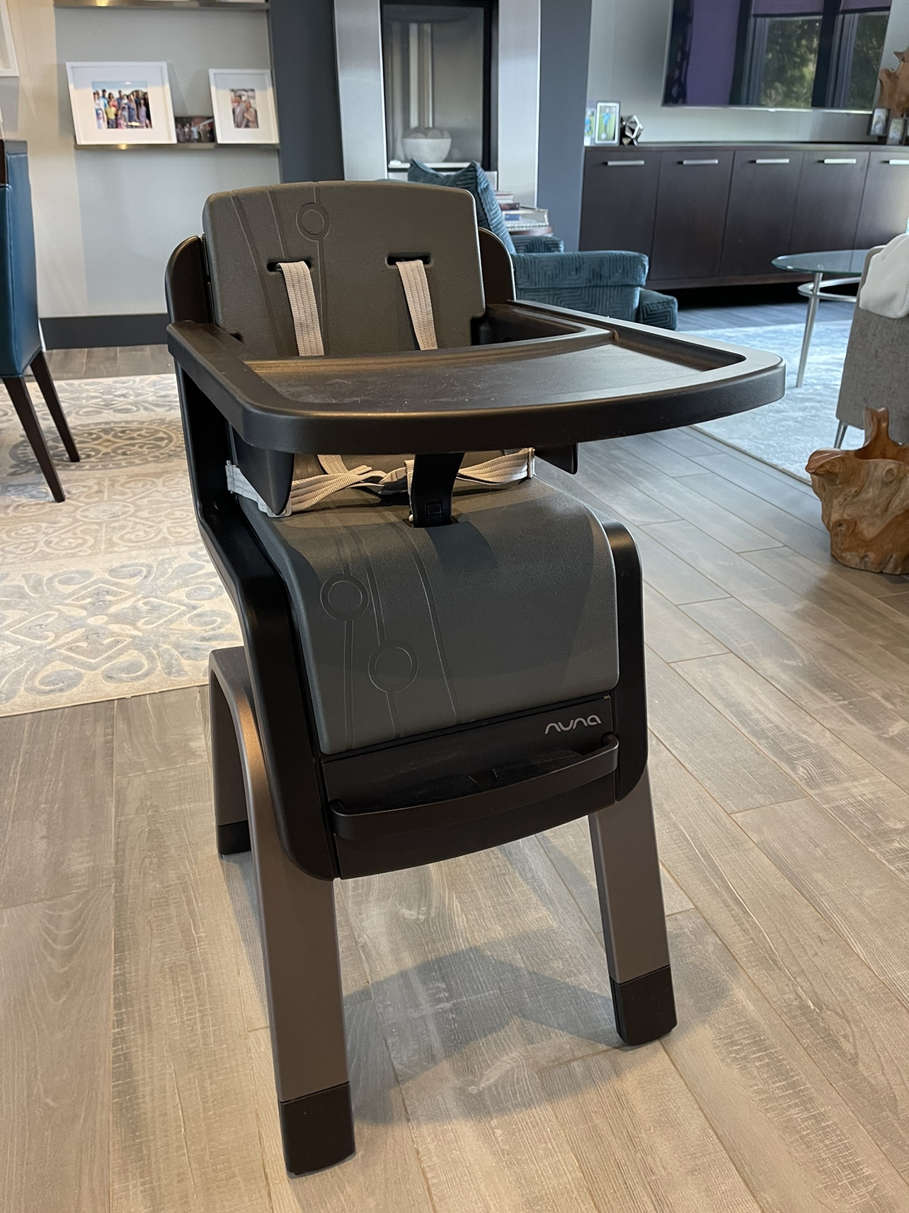 Nuna ZAAZ highchair. A sleek and stylish highchair for babies and toddlers. Excellent condition except for some minor scratches on the tray. Fully sanitized. Retail: $399.00 +tax