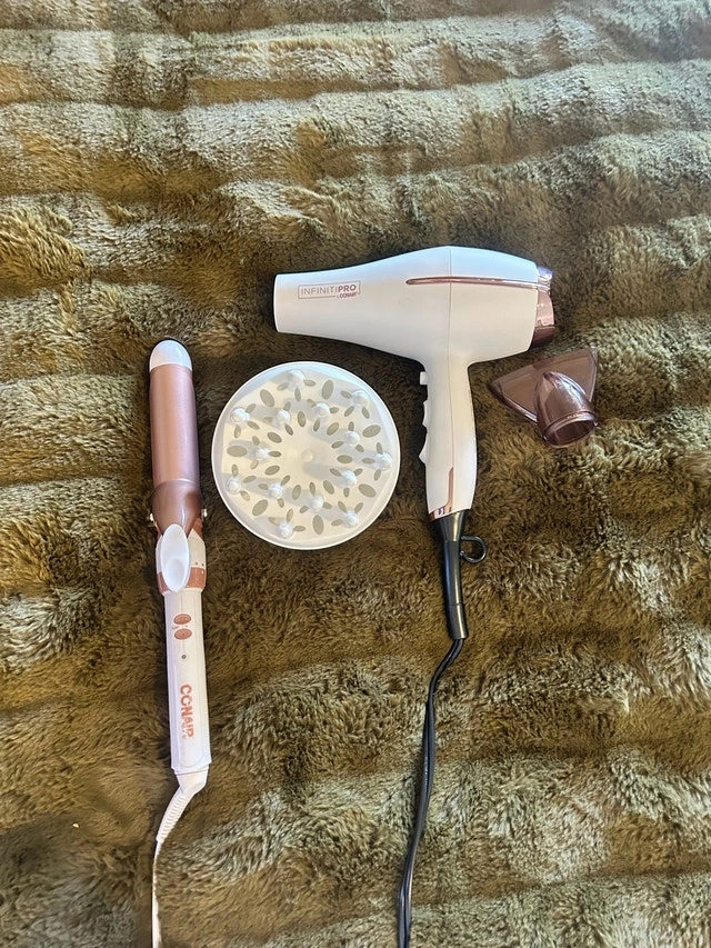 Used Conair curling iron and Infiniti Pro blow dryer with attachments. These hair tools are in good condition and ready for a new home. I'm decluttering my space and hoping these can find a new owner who will put them to good use. If the ad is up, it's still available.