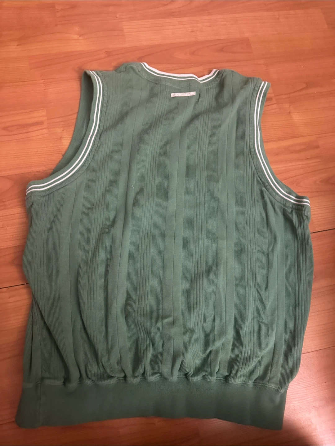 Here's a 100% cotton Nicklaus sweater vest in a lovely green colour! It's perfect for layering or wearing on its own. It's in great condition and ready for a new home! Slight bleach stops not very noticeable