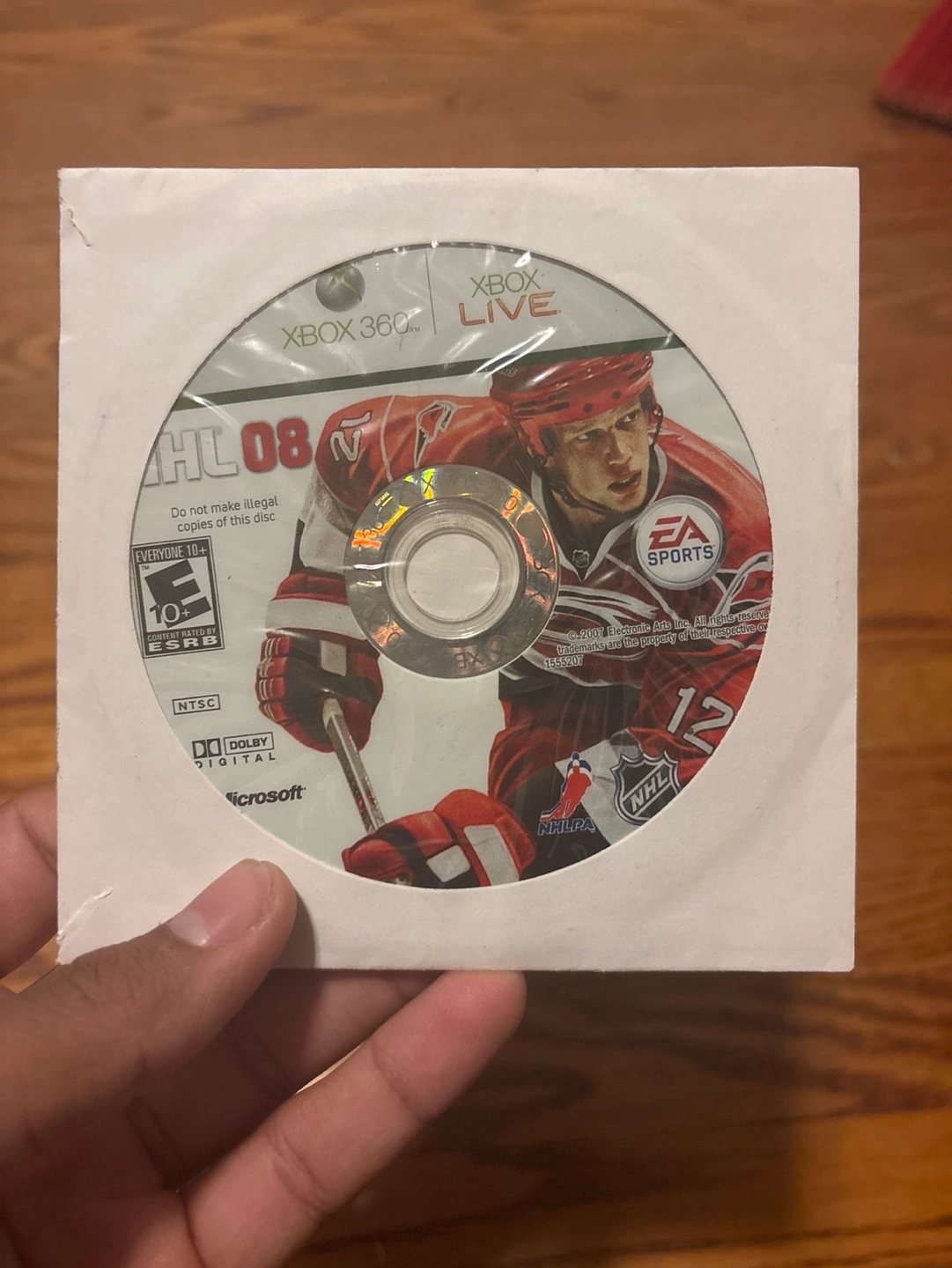 Xbox 360 NHL 08 game. Includes case and disc. Rated E for Everyone 10+. EA Sports.