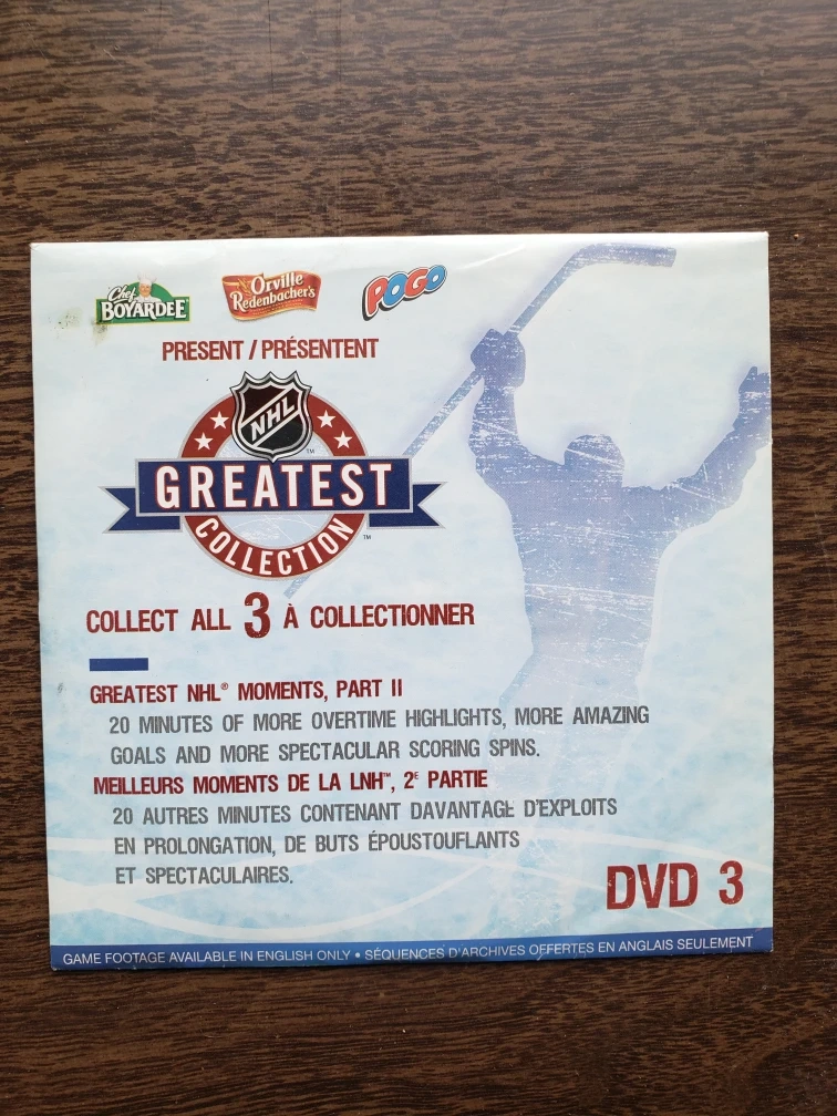 65Selling a complete set of the NHL Greatest Collection DVDs! This set includes DVD 1, DVD 2, and DVD 3. Each DVD features 30 minutes of game footage, showcasing the greatest moments in Stanley Cup history and overtime wins. A must-have for any hockey fan!