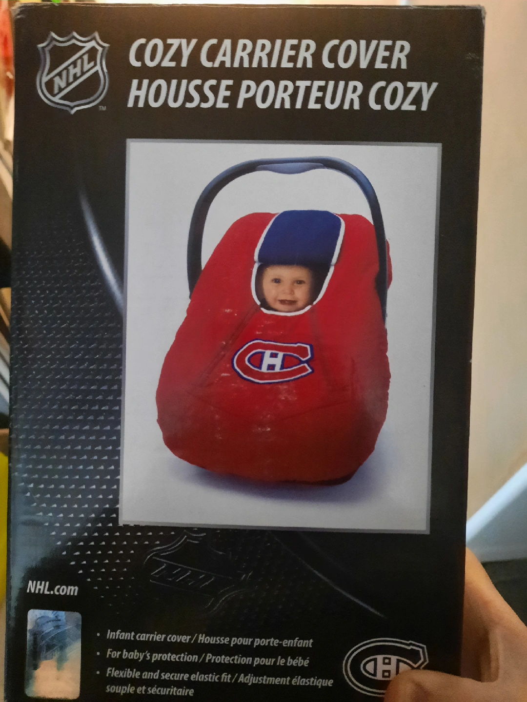 10Keep your little one cozy with this NHL Montreal Canadiens infant carrier cover! It's designed for baby's protection and features a flexible and secure elastic fit. Perfect for any young Canadiens fan!