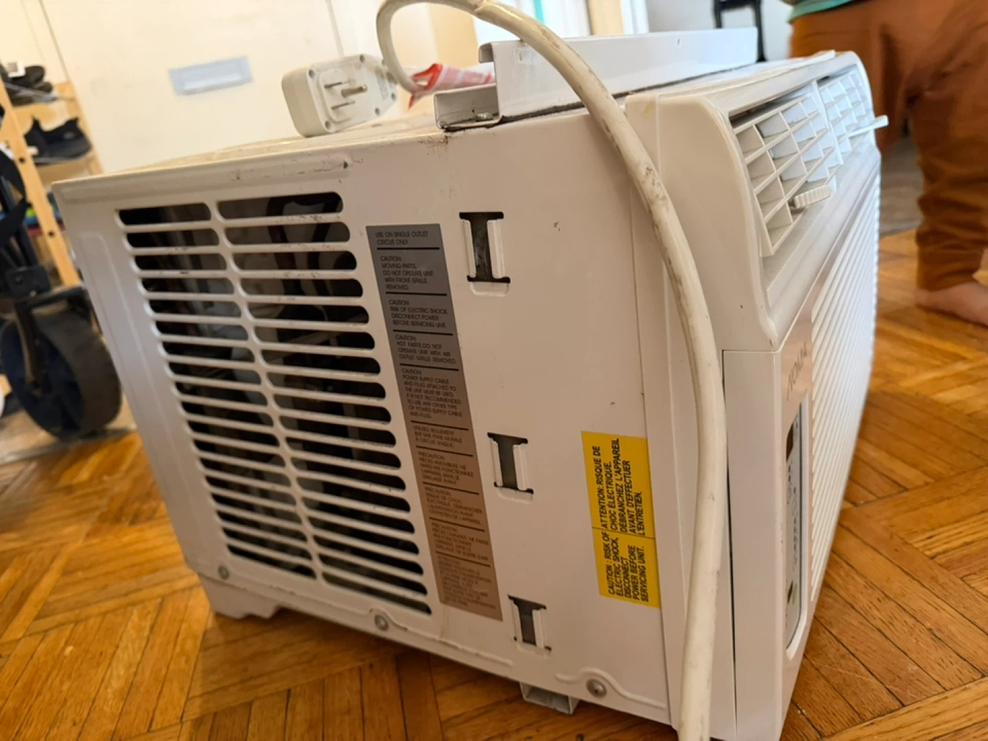 This is a NOMA window air conditioner. It's white and ready for installation. Needs a good cleaning from storage.