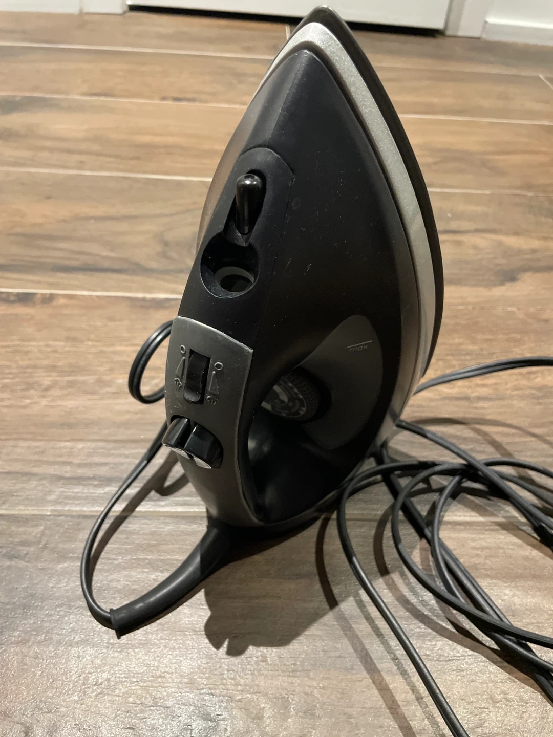 This GE iron features auto shut-off for safety and powerful steam performance. It has a nonstick soleplate and a vertical steam option. It comes with a water filling cup.