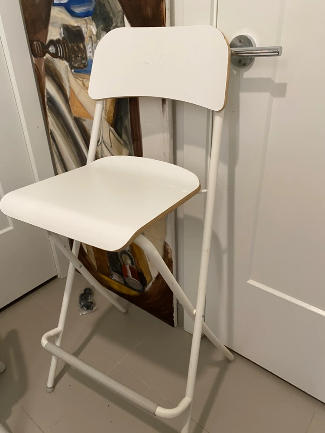 Buy & SellWhite Folding Bar StoolWhite Folding Bar Stool$20This is a white folding bar stool. It's made of metal and has a wooden seat and backrest. The stool folds for easy storage.WHERE TO MEET20 INN ON THE PARK DRView MapSELLERverifiedREZABanbury1000+48 reviews0 chats·0 favorites·30 viewsSEND CHAT TO SELLERHi REZA! I’m interested in your listing.Hi REZA! I’m interested in your listing.Get the Karrot app to chatSign In to chat