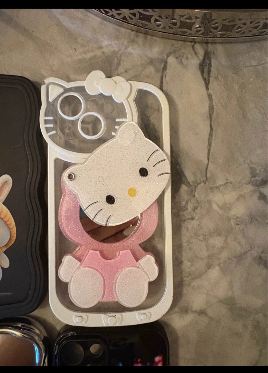 One has a vanity mirror (Hello Kitty one)