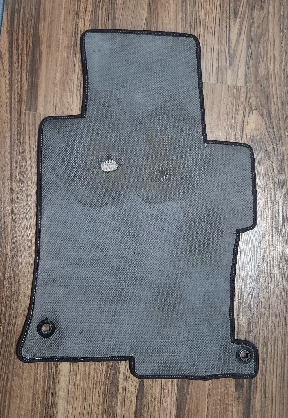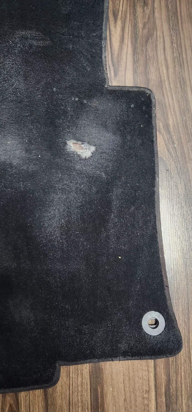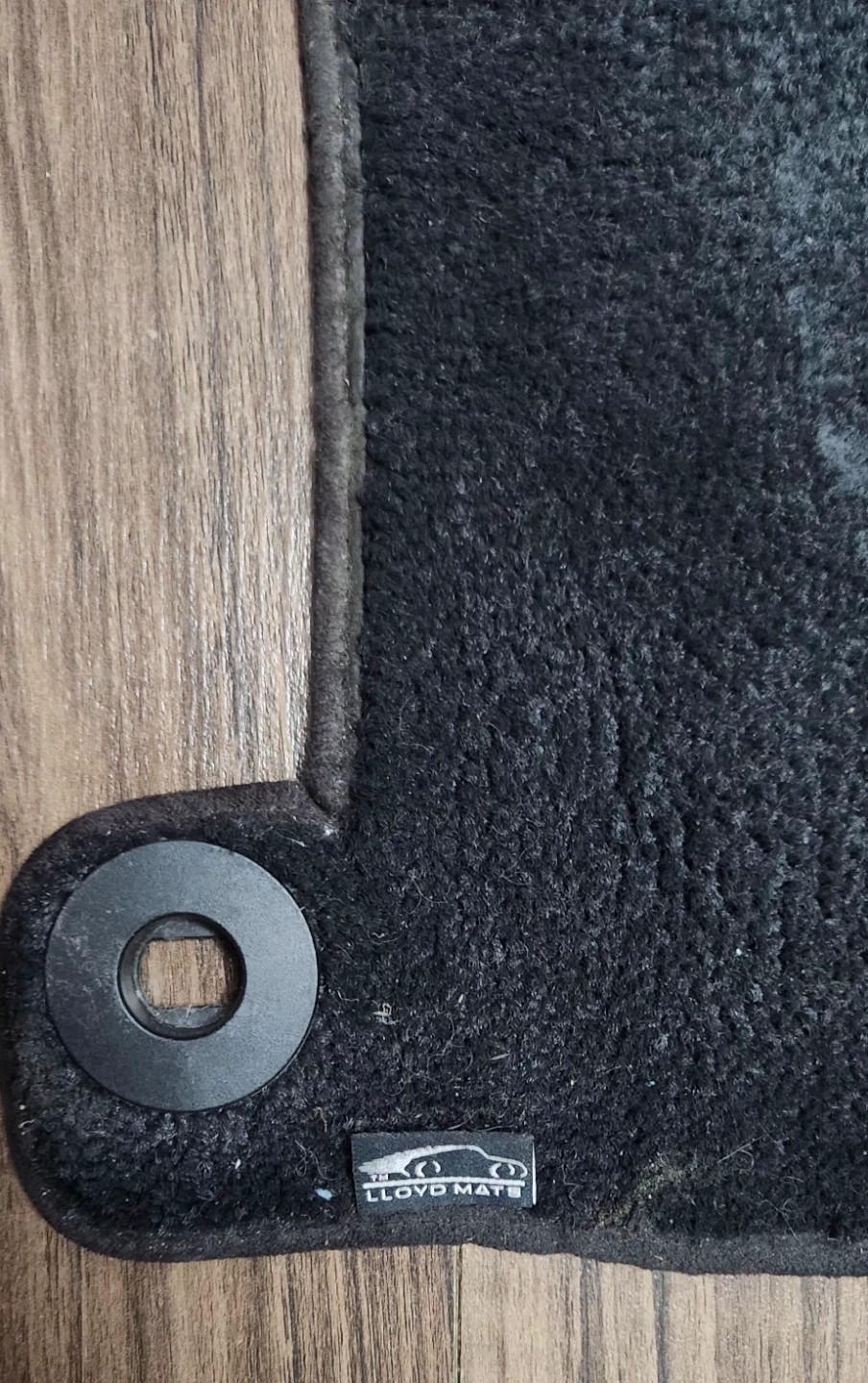 Selling a custom fit Honda Accord black front driver's floor mat made by Lloyd Mats. It shows some signs of use. Has mounting hole to keep the mat securely in place.