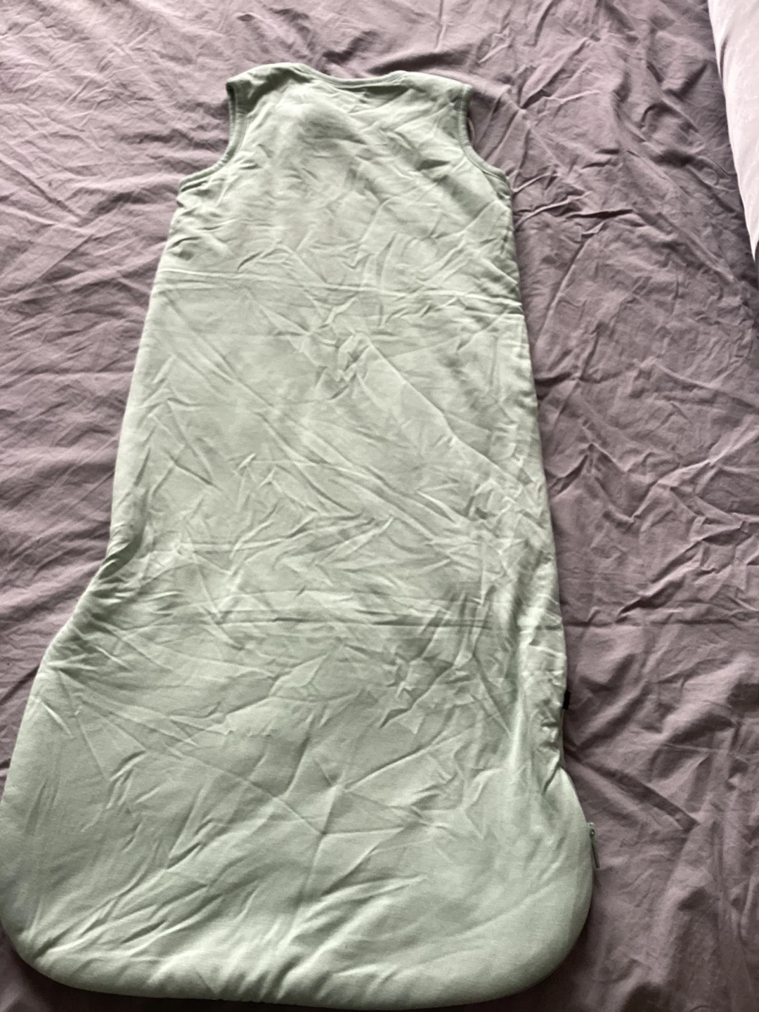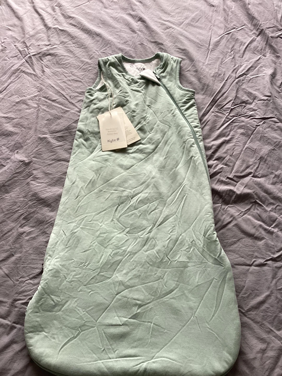 New Kyte Baby sleep bag in sage colour. It's a wearable blanket for babies 0-6 months. Made from bamboo. From smoke and pet free home.