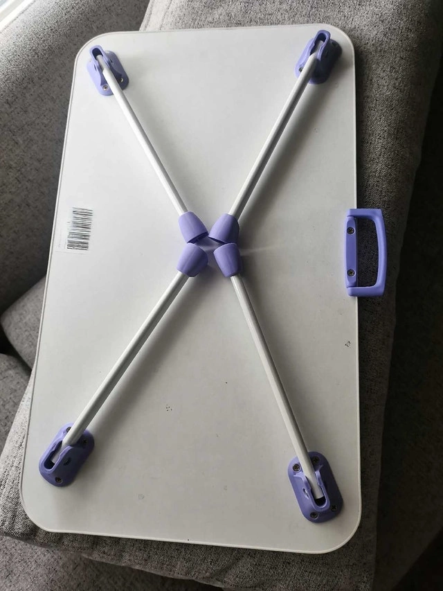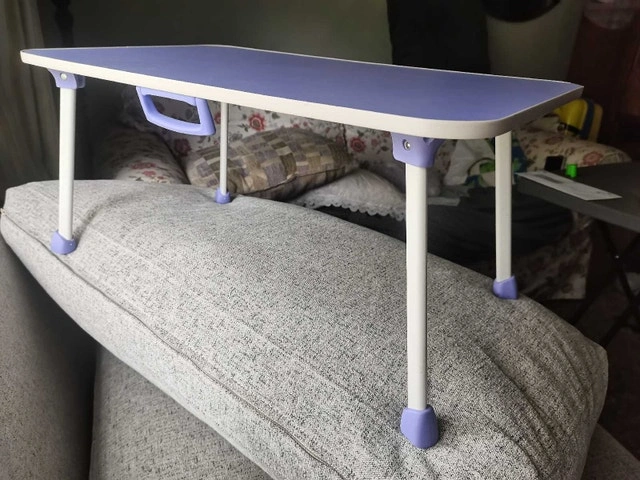 Foldable legs, sits on couch or on bed or raised table top size: 22.5x13.5x10.5. Can meet in the Chinook area or NW.