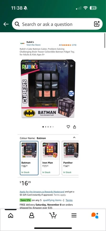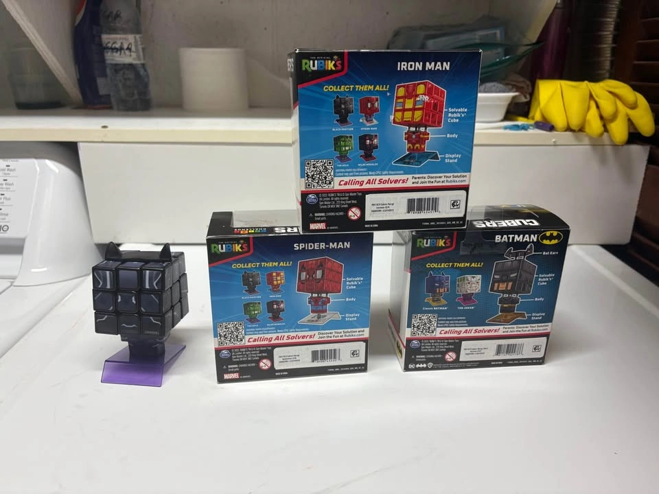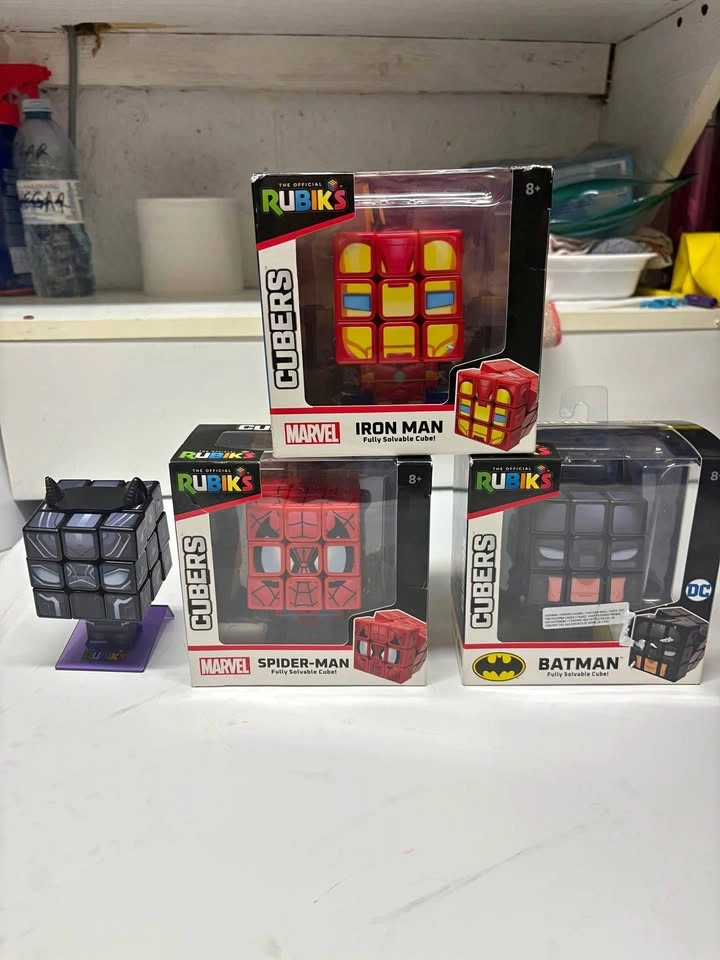 97NIB RUBIK'S CUBE 3X3 SUPERHERO LOT of 4 (IRON MAN, SPIDER-MAN, BLACK PANTHER & BATMAN CUBES) Price is for all 4! Great Deal: retails $12-17+ txs each Batman- NIB Unopened Iron Man-NIB Unopened Spider-Man- NIB Unopened Black Panther -Loose NIB only has retail shelf wear Location: PICK UP ONLY Riverbend area Street is Beeston Drive I’ll give house number when otw and eta given I get home after 6pm daily Or 1900 Main St 10am-5pm Tues, Thurs, Fri, Sat Description The Rubik's Cube Superhero Bundle unites four iconic superheroes in one unique, collector-friendly package. Each 3x3 Rubik's Cube is fully solvable and decorated with signature colors and details representing Iron Man, Spider-Man, Black Panther, and Batman. Once solved, attach the included character head and any accessories to the body and display stand to transform your cube into a striking display figure. These collectibles are perfect for Marvel and DC Comics fans and bring a creative twist to the classic Rubik's Cube.