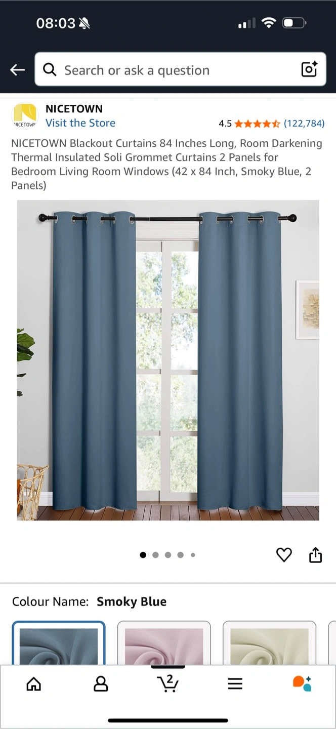 I'm selling NICETOWN Blackout Curtains that are 42 x 84 inches long. These are room darkening thermal insulated Soli Grommet curtains, perfect for bedroom, living room windows. They come in the colors: - smoky blue (2 panels) - baby pink (2 panels) - grey (4 panels) I’m willing to sell how many ever panels that suit you.