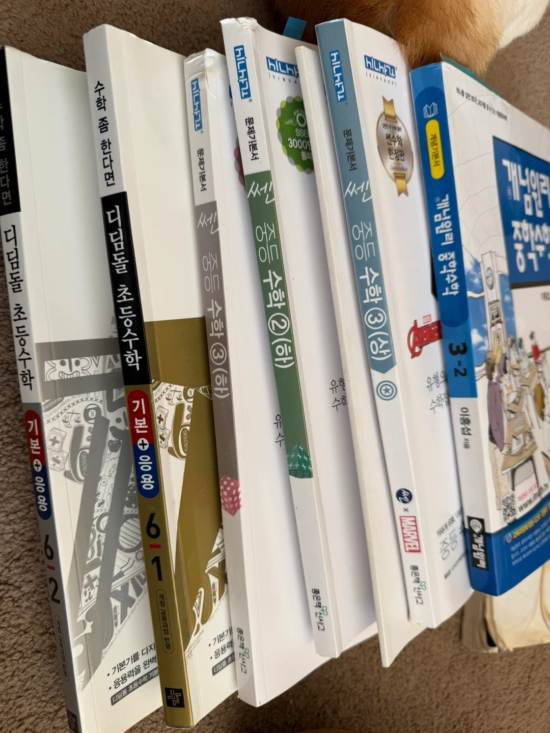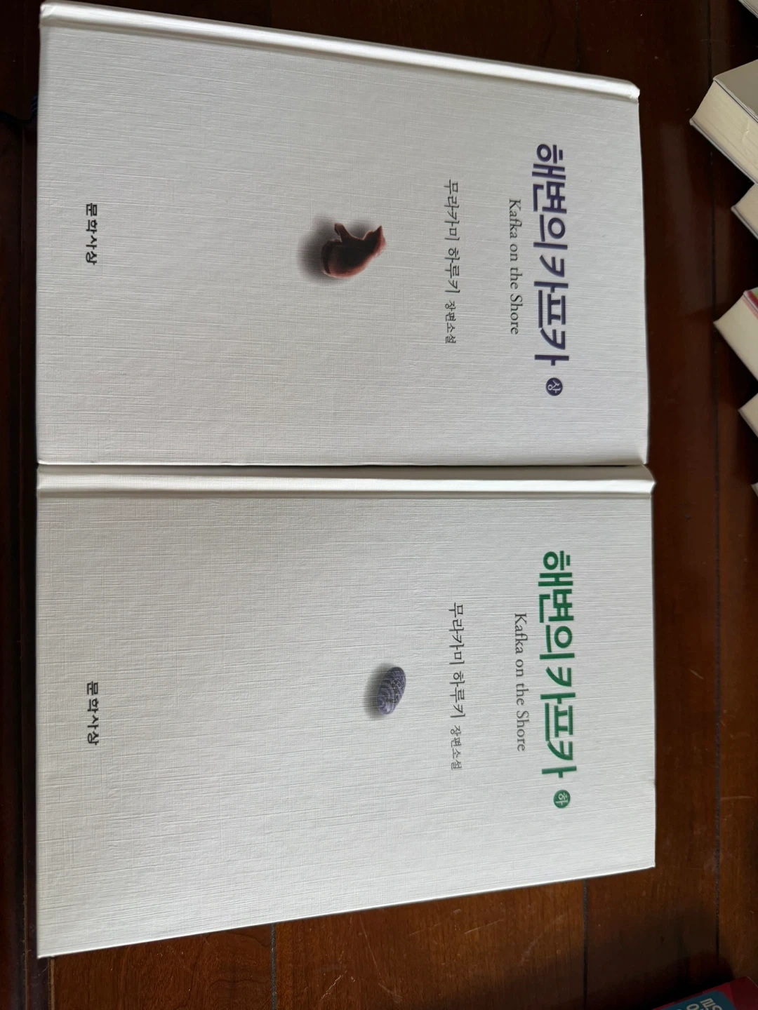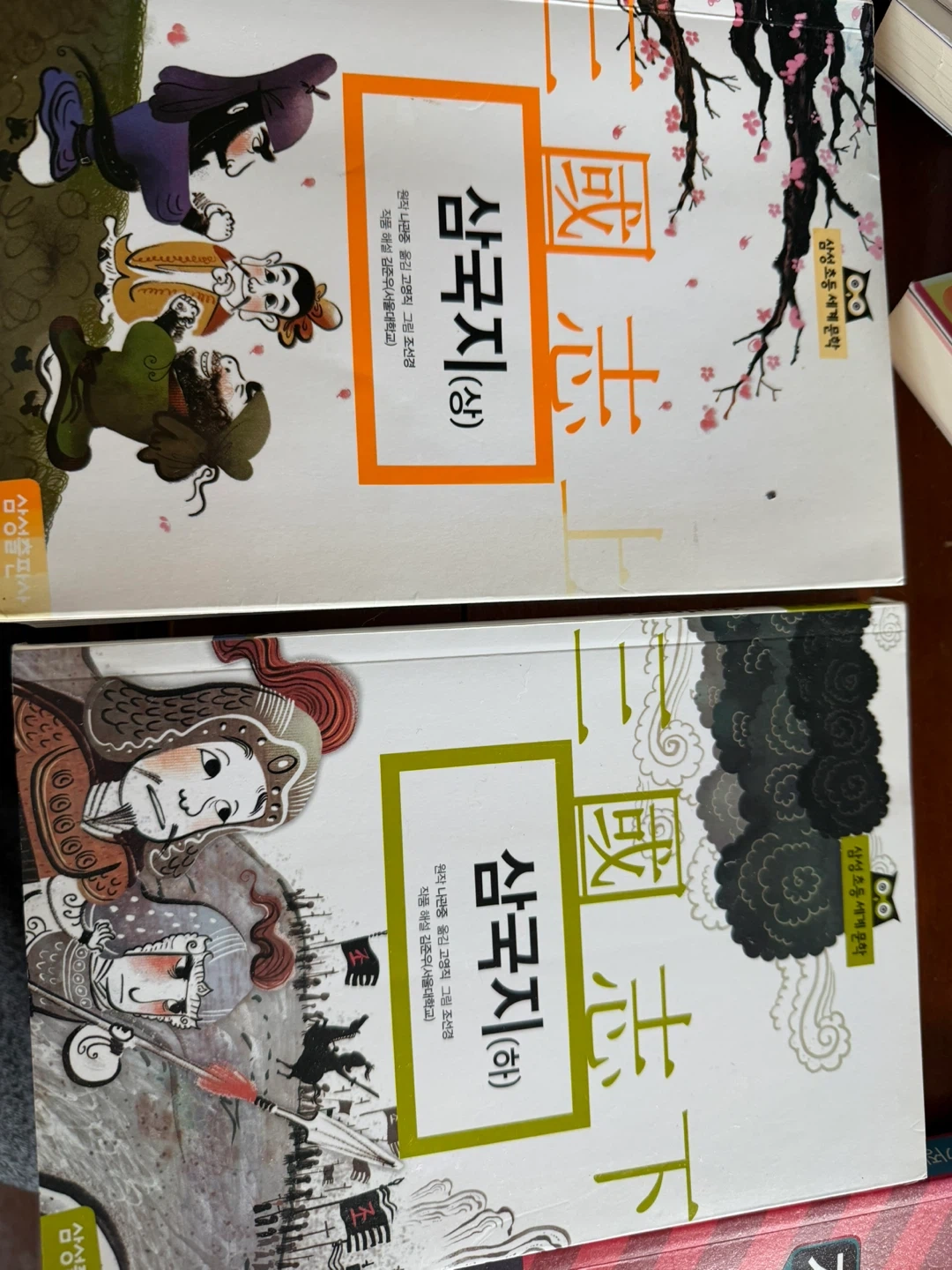 Collection of Korean books including 'Romance of the Three Kingdoms' (Volumes Sang and Ha), 'Kafka on the Shore' (Volumes 1 & 2), and a set of 'Geom-i' volumes 1-5. Also includes various Korean math textbooks. Great for readers interested in Korean literature and educational materials.