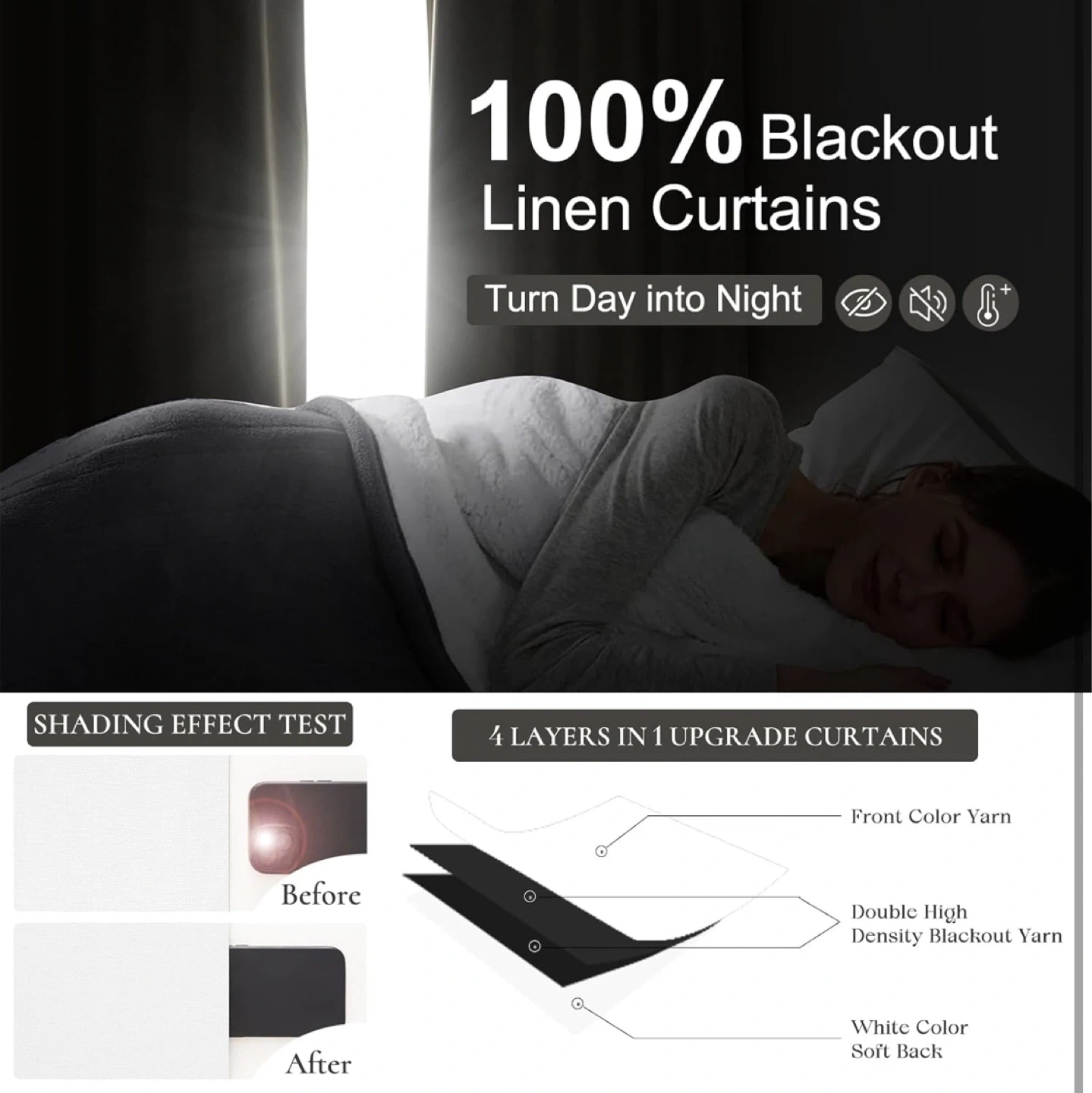 100% Blackout Linen Blend Curtains 90 inches(Set of 2 Panels)