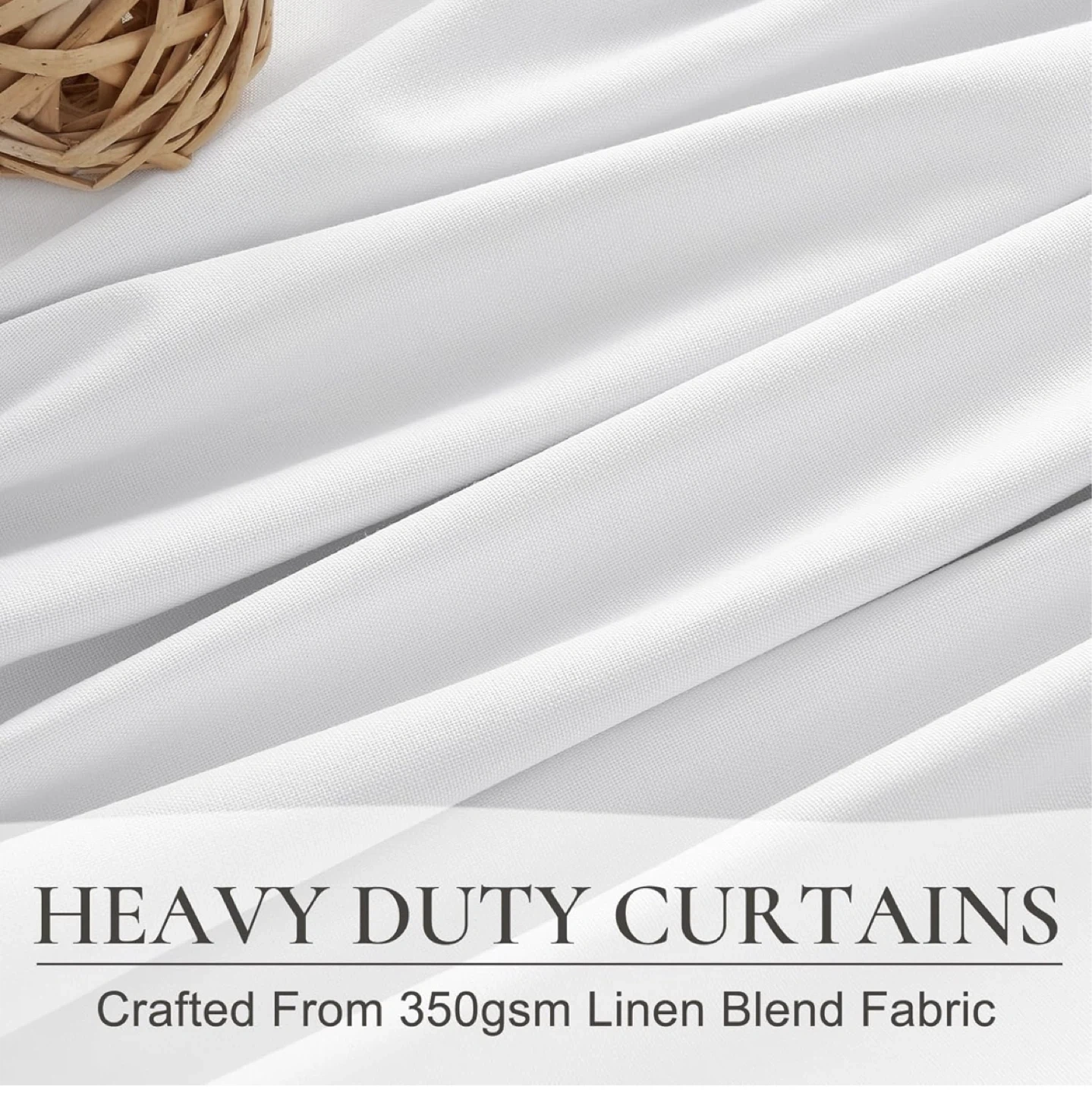 These heavy-duty curtains are crafted from a 350gsm linen blend fabric for excellent light blocking. They feature a 4-layer construction with double high-density blackout yarn. Included are 32 hooks and 32 rings for easy hanging with various options like a hook belt, track system, or rod pocket.