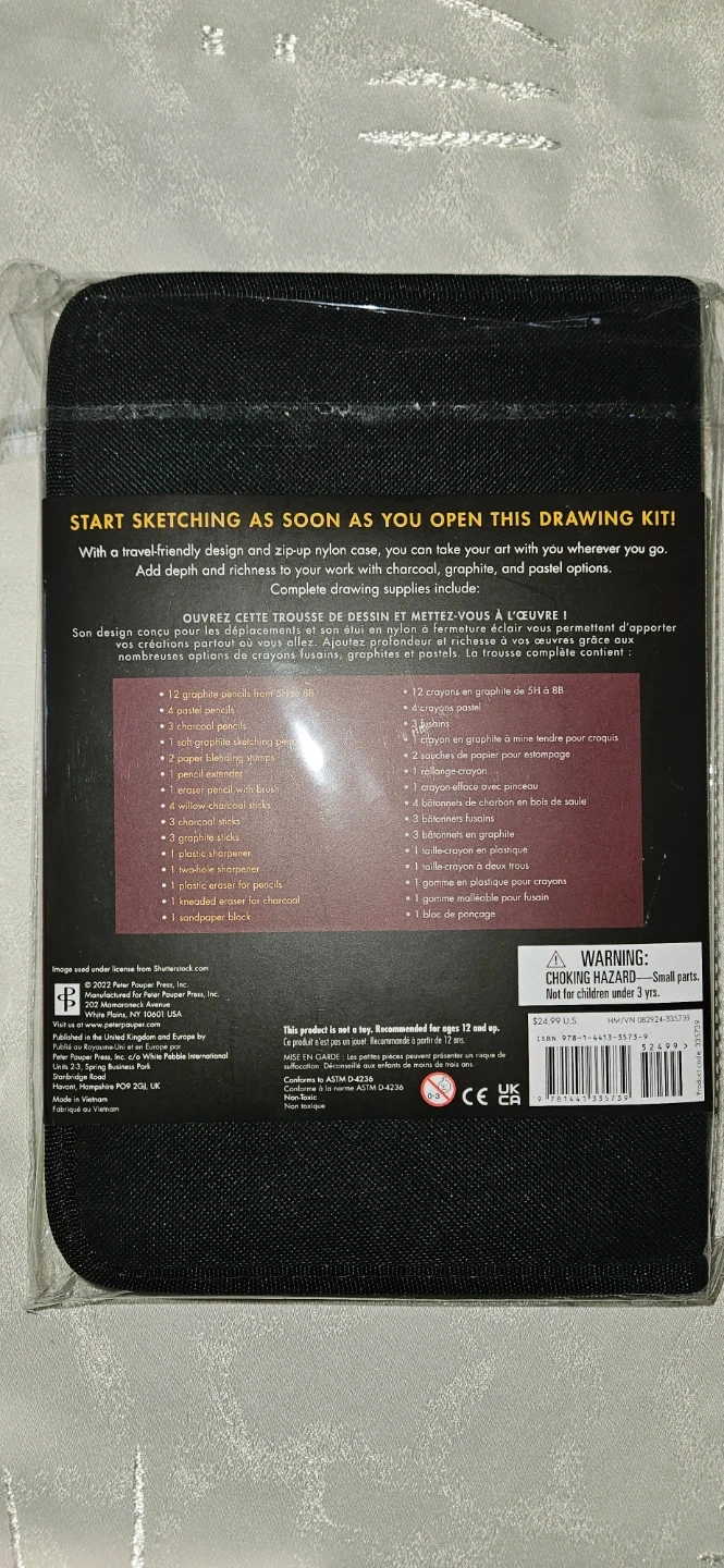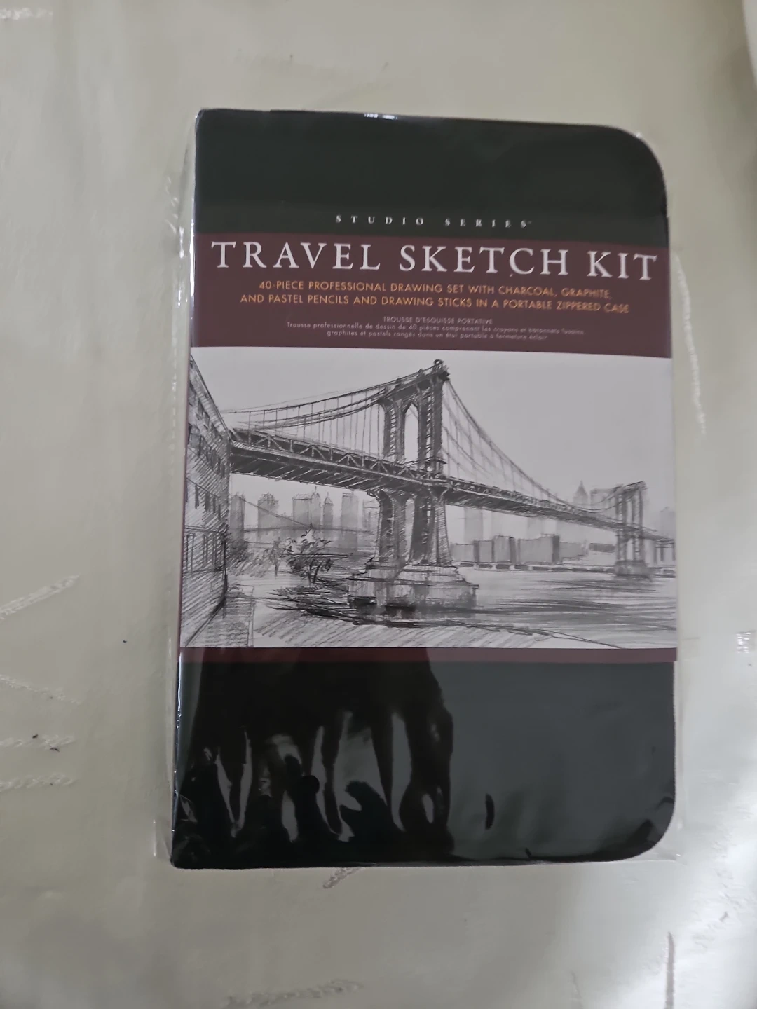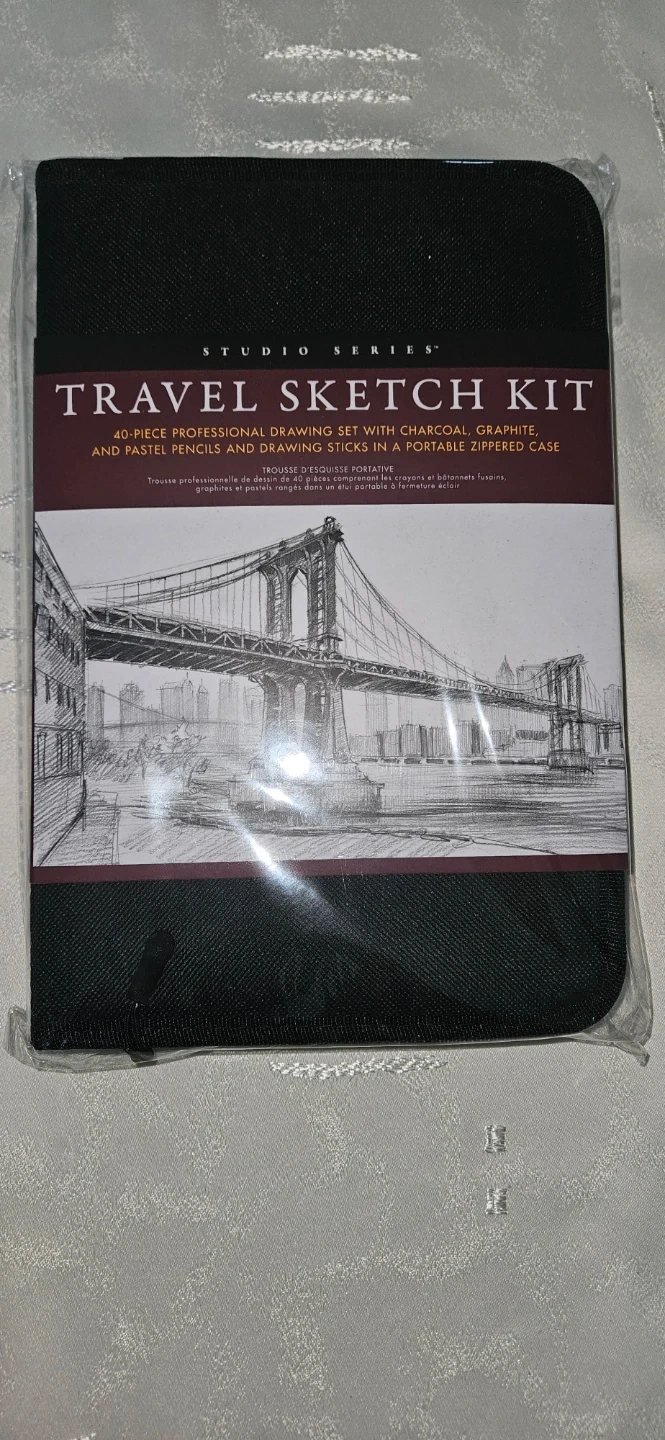 This is a 40-piece professional drawing set with charcoal, graphite, and pastel pencils, plus drawing sticks, all in a portable zippered case. It includes various pencils, crayons, sticks, erasers, and a sharpener. It's great for artists on the go!