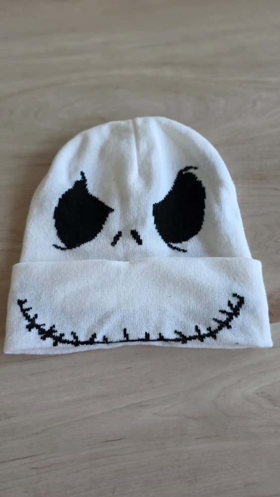 Selling a Nightmare Before Christmas beanie featuring Jack Skellington's face! It's a white beanie with black embroidery of Jack's iconic grin and eyes. Perfect for any fan of the movie or a cozy winter accessory. 🧢 Jack Skellington Beanie ✔ Inspired by The Nightmare Before Christmas ✔ White with black stitched smile design ✔ Warm & comfy, one size fits most
