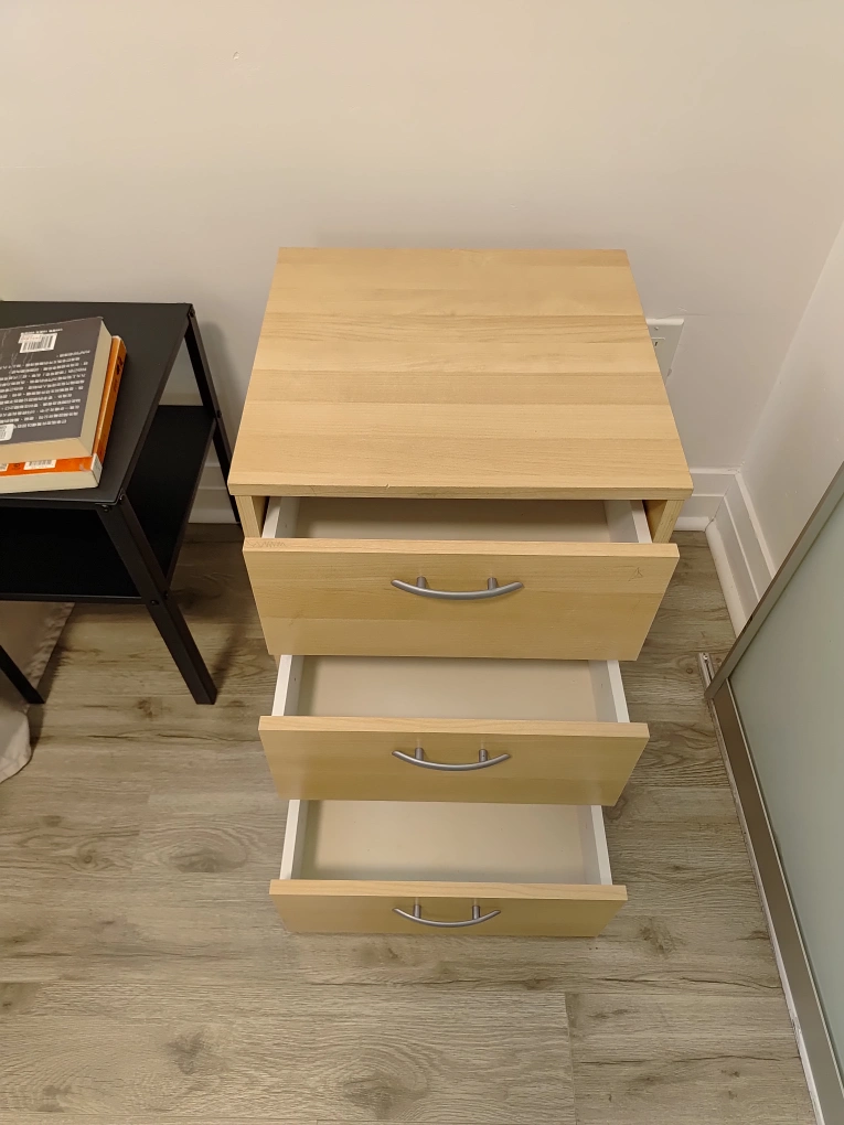 410nightstand with 3 drawers in good condition. 16 x 16 x 22 inches. Located near Eaton Centre downtown Toronto.
