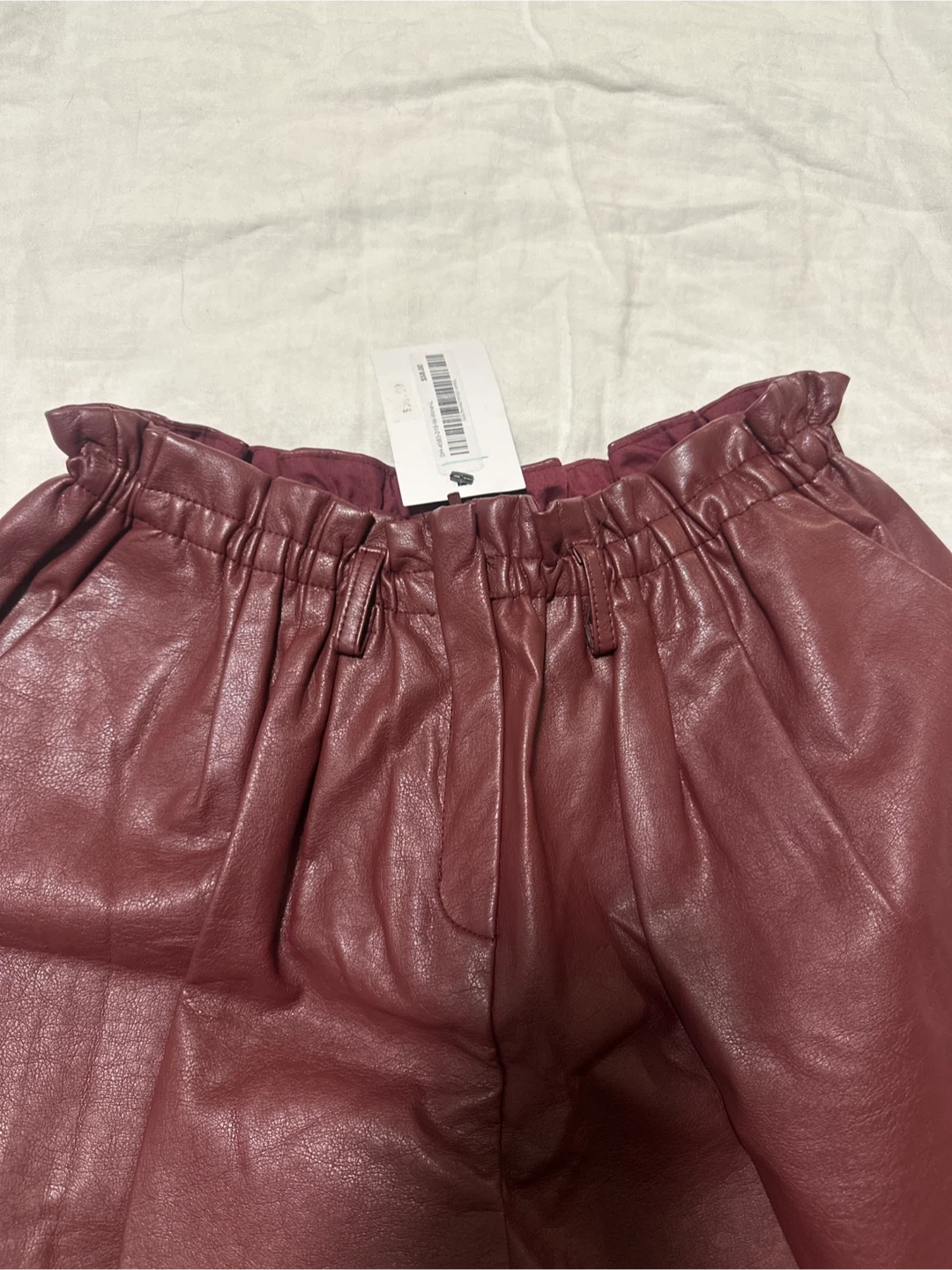 Selling a pair of Oak + Fort vegan leather shorts in a rich burgundy colour. They're size Large still with tag